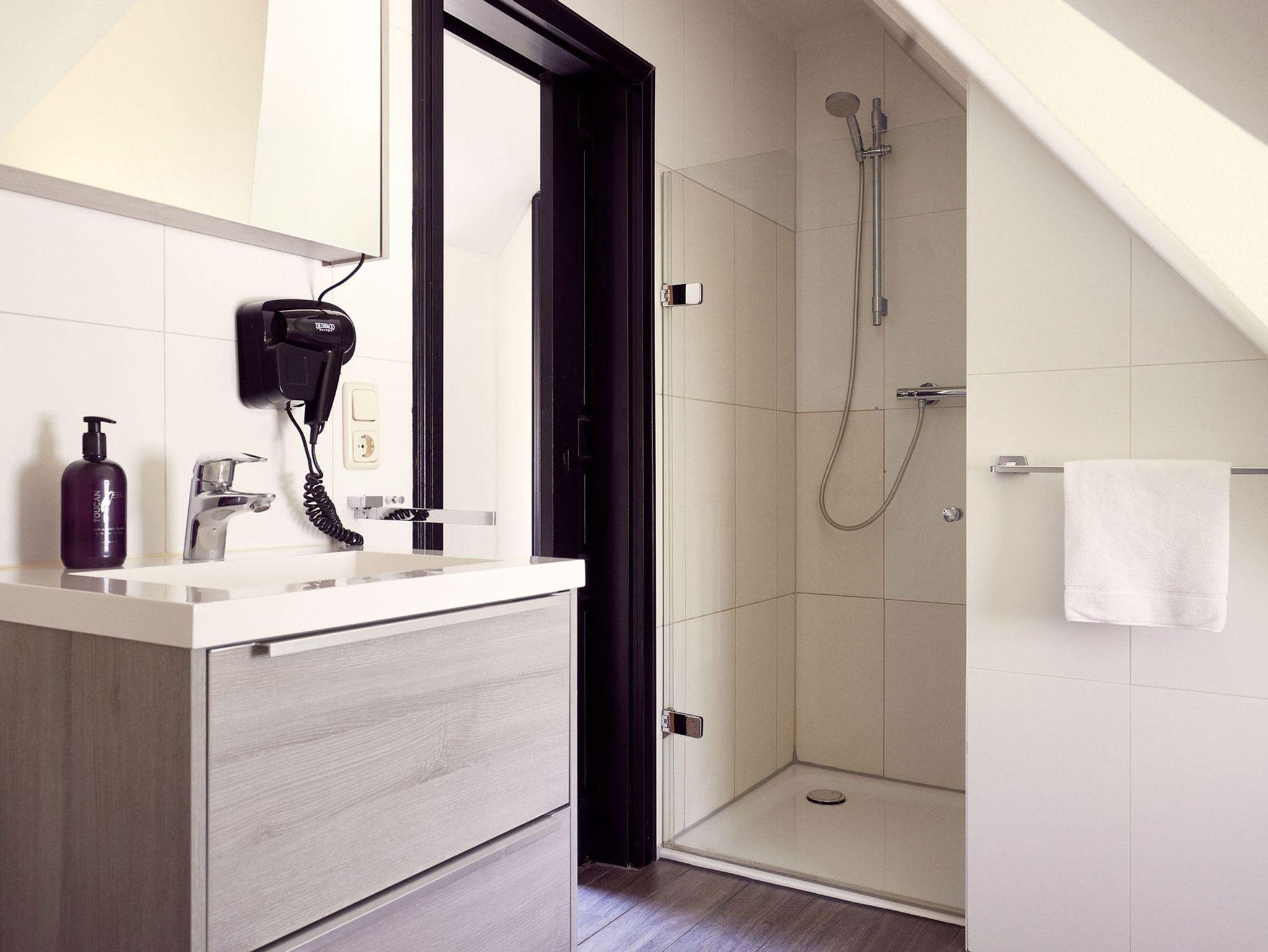 Im Obergeschoss befinden sich zwei weitere Schlafräume mit je einem Doppelbett sowie ein Bad mit Dusche und WC.