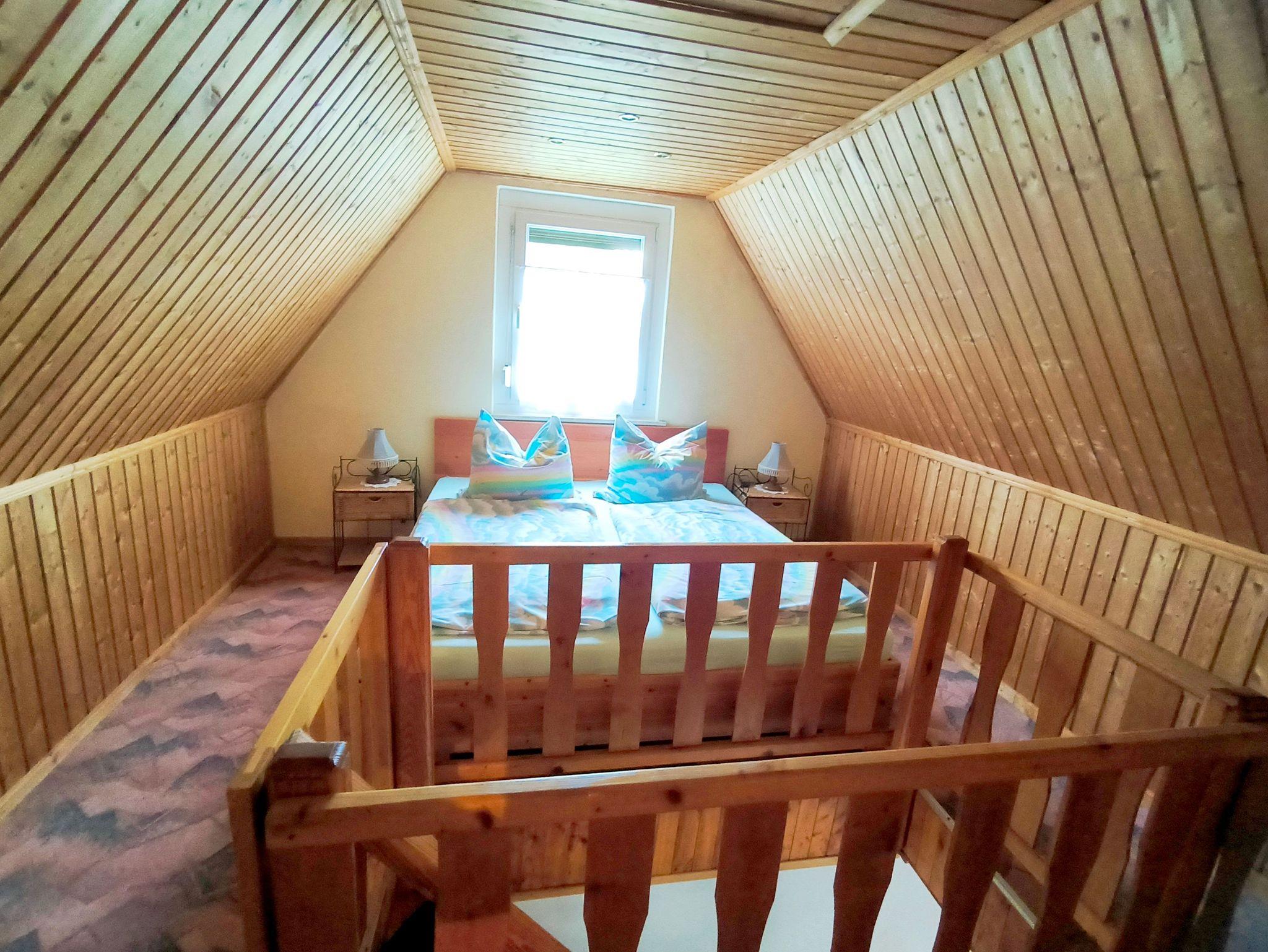 Im Obergeschoss erreichen Sie über eine Treppe zwei einladende Schlafzimmer. Das erste Schlafzimmer (Durchgangszimmer) ist mit einem Doppelbett ausgestattet. Das zweite Schlafzimmer verfügt ebenfalls über Doppelbett sowie einen Kleiderschrank und eine kleine Sitzecke.