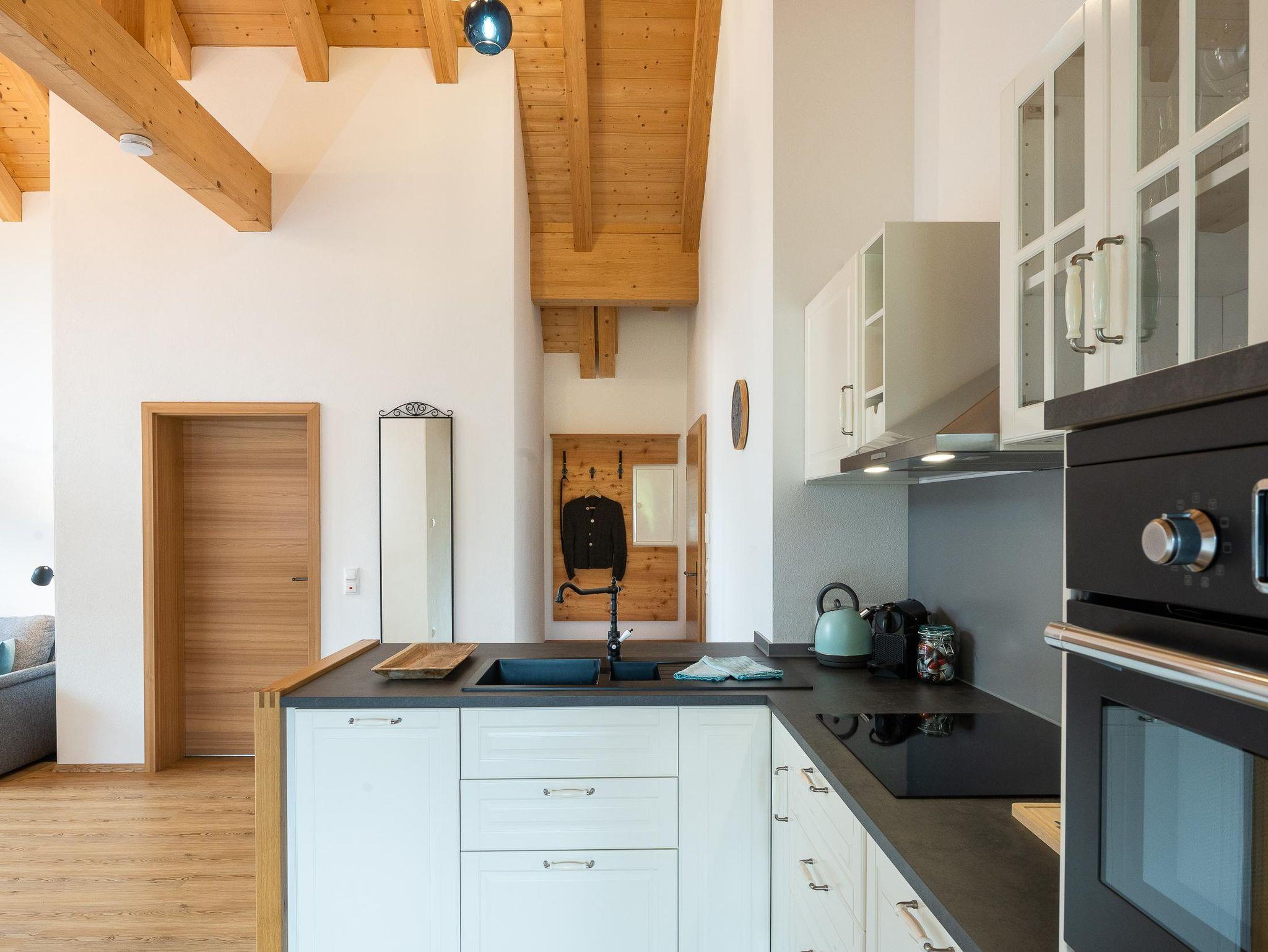 • großer Wohn-Essbereich mit moderner Küche, Essplatz, TV und gemütlichem Sofa
