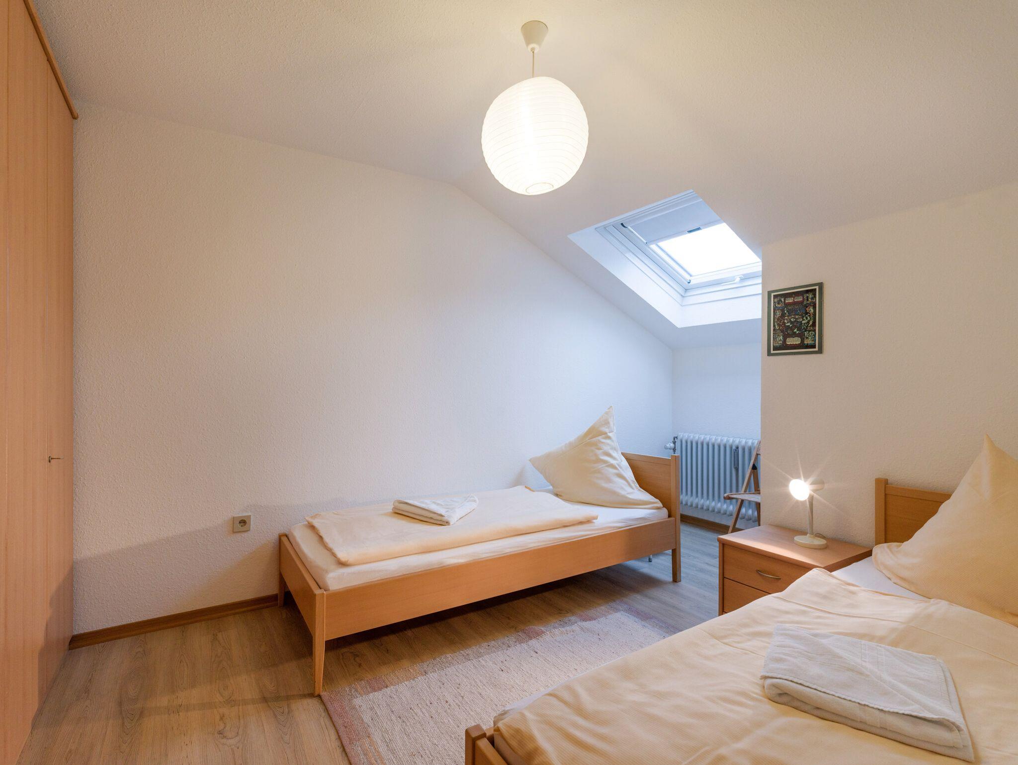 Freundlich eingerichtete Ferienwohnung im Obergeschoss mit separater Küche, Bad mit Badewanne, Schlafzimmer mit einem Doppelbett und Kinderzimmer mit 2 Betten. Der helle Wohnraum verfügt über eine gemütliche Essecke und Couch. Platz genug für 2 oder mehr Erwachsene oder einer kleinen Familie. Der Balkon lädt nach einem ereignisreichen Tag zum Sitzen im Freien ein. Die Küche ist mit einem Kühlschrank, Mikrowelle und einem 4- Plattenherd, sowie Kaffeemaschine, Toaster, Wasserkocher und Küchenutensilien ausgestattet. Die Wohnung liegt in einer familienfreundlichen Anlage mit Spielplatz, Ruheinseln im Garten und Hallenbad in ruhiger Lage am Tor zu den Alpen. Ohne das Haus verlassen zu müssen haben Sie im Untergeschoss direkten Zugang zu Spielzimmer, Sauna, Fitnessraum und Schwimmbad.