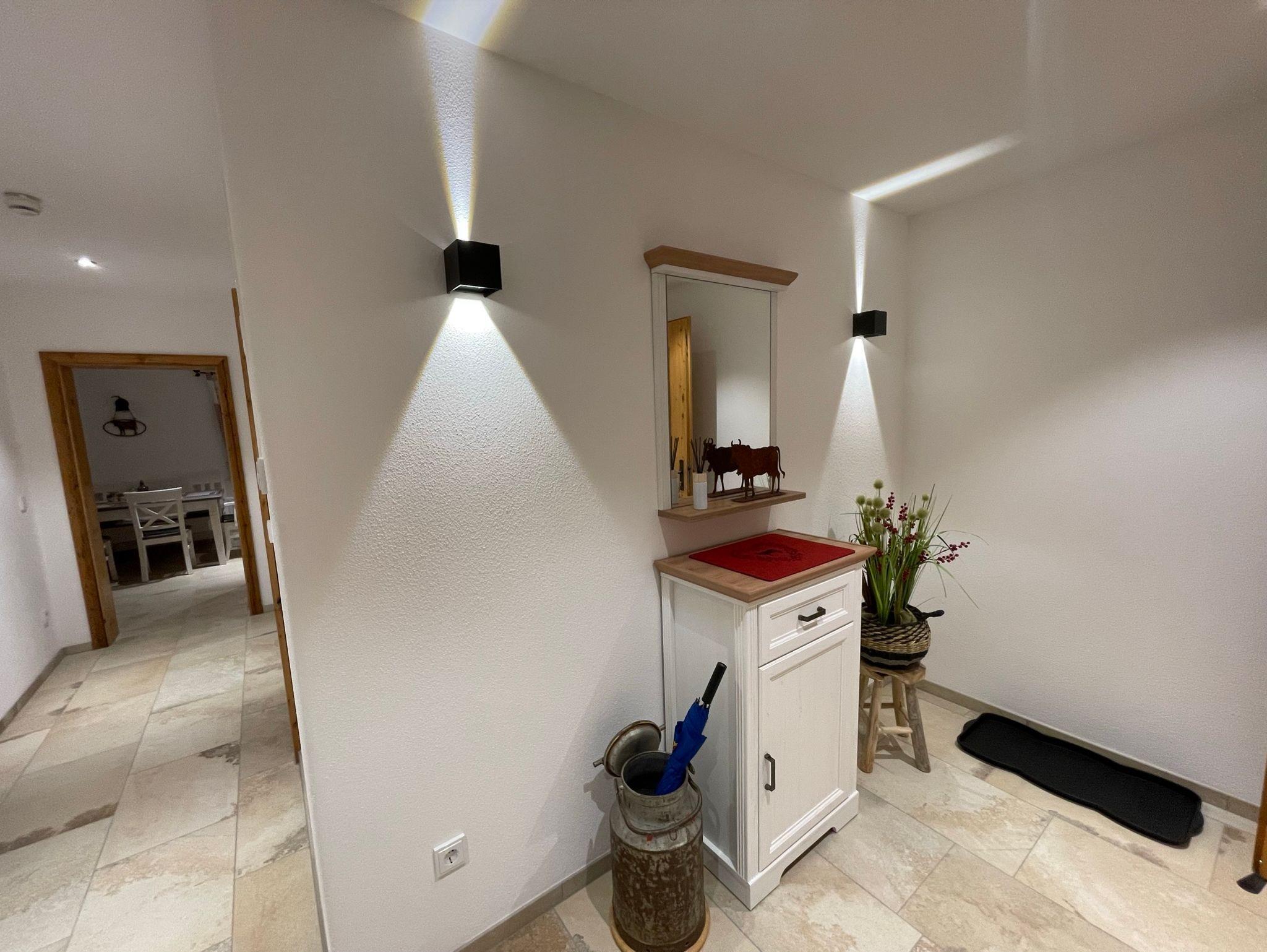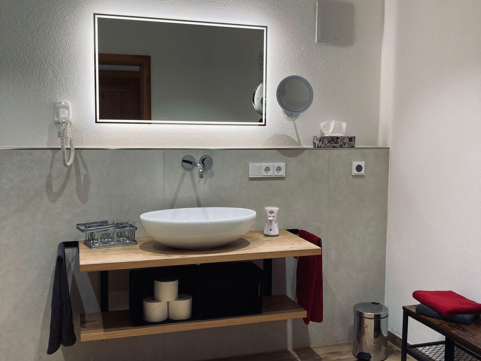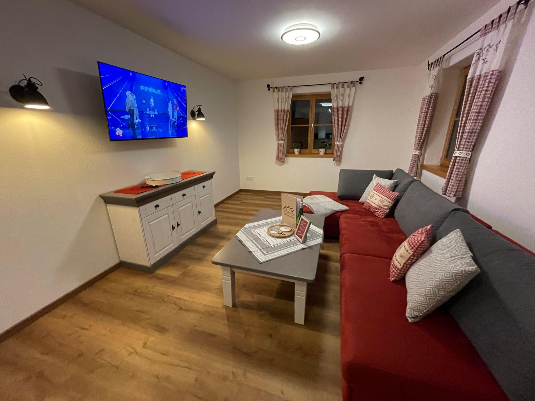Unsere FeWo Schwarzenberg liegt im 1. Stock des Hauses und hat ca. 90 qm. Sie verfügt über ein großes Elternschlafzimmer mit Doppelbett und TV, sowie über ein separates Schlafzimmer mit 2 Einzelbetten. Ein großer Wohn- & Essbereich mit integrierter Küche ist in der Wohnung ebenfalls zu finden. Dort ist ein TV mit großer Schlafcouch, ein Essplatz für 6 Personen und eine vollausgestattete Küche. Im Badezimmer finden Sie eine Regendusche mit LED-Beleuchtung, Föhn und Kosmetikspiegel sowie einen Handtuchtrockner. Der großzügige Eingangsbereich der Wohnung bietet Platz für eine Garderobe und weitere Schränke zur Aufbewahrung Ihrer persönlichen Dinge. Zusätzlich dürfen Sie unseren Skiraum im EG nutzen und erhalten einen kostenlosen WLAN-Zugang. Für Ihr Auto ist ein Stellplatz direkt vor dem Haus reserviert.