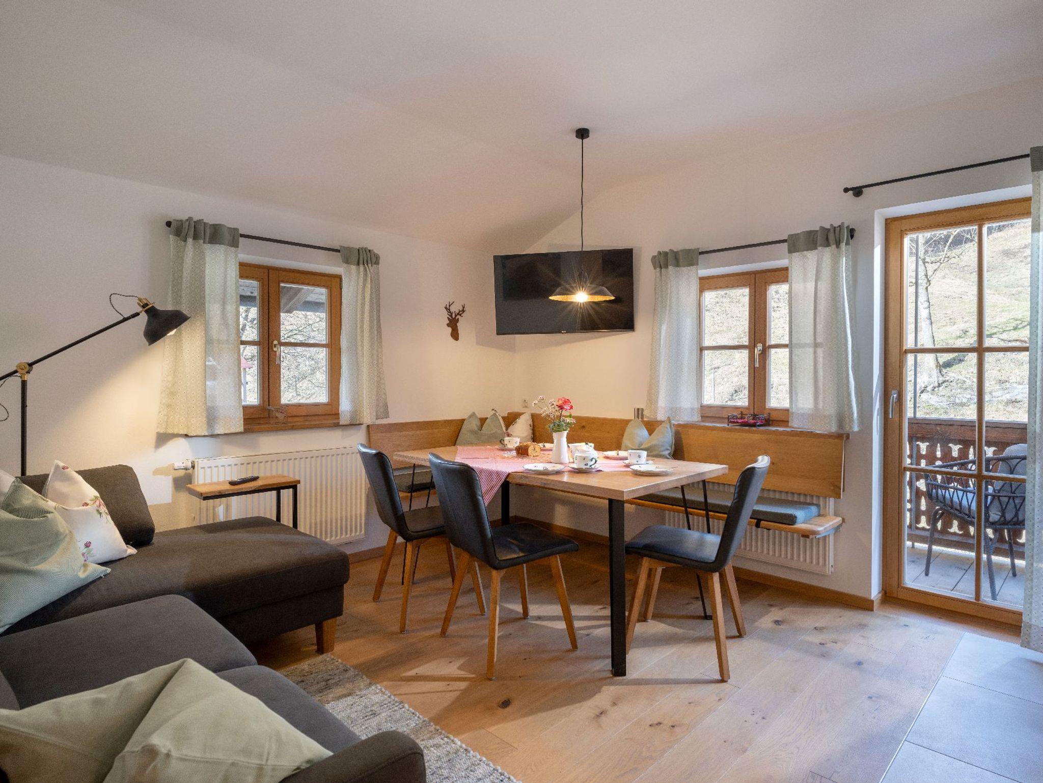 Unsere liebevoll eingerichtete Ferienwohnung Almwiese verbindet natürlichen Charme mit modernem Komfort. Warme Holztöne, hochwertige Materialien und viel Liebe zum Detail sorgen für ein rundum behagliches Wohngefühl.