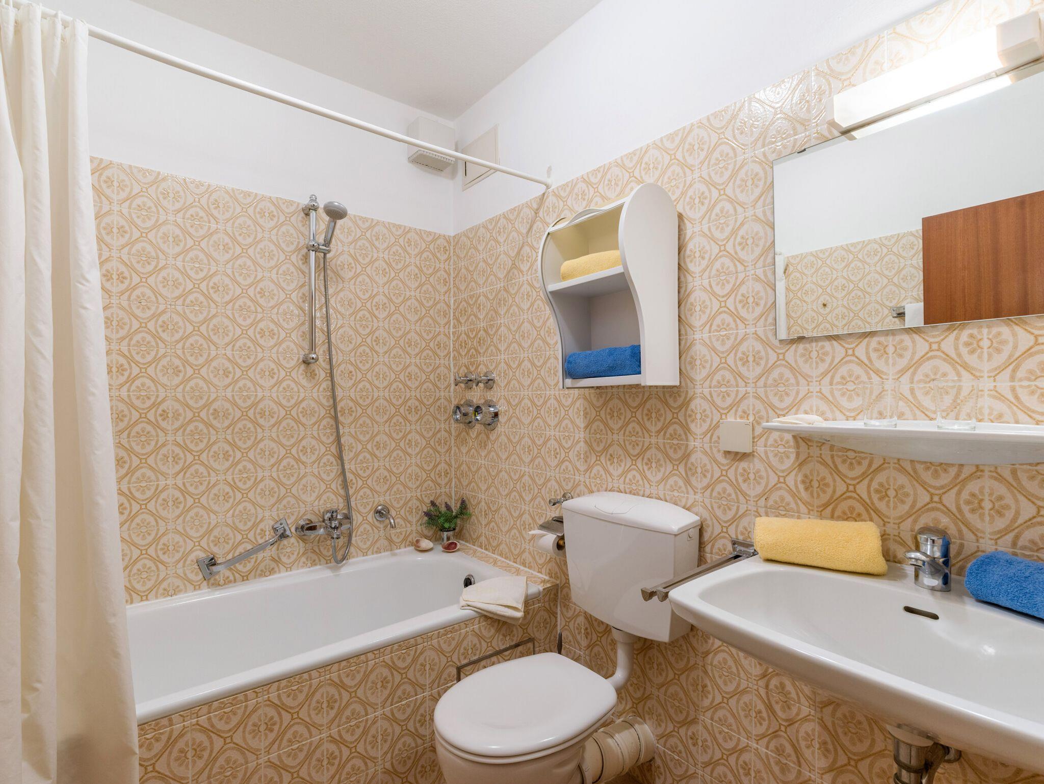Freundlich eingerichtete Ferienwohnung im Erdgeschoss mit separater Küche, Bad mit Badewanne, Schlafzimmer mit einem Doppel- und einem Einzelbett , hellen Wohnraum mit gemütlicher Essecke. Platz genug für 2 oder mehr Erwachsene oder einer kleinen Familie. Das Wohnzimmer ist mit einer Ausziehcouch für 2 Personen und einem Esstisch für 5 Personen ausgestattet. Der Balkon lädt nach einem ereignisreichen Tag zum Sitzen im Freien ein. Die Küche verfügt über Backofen, Kühlschrank und 4- Plattenherd, sowie Kaffeemaschine, Mikrowelle, Toaster , Wasserkocher und Küchenutensilien. Die Wohnung liegt in einer familienfreundlichen Anlage mit Spielplatz und Ruheinseln im Garten, sowie Hallenbad in ruhiger Lage am Tor zu den Alpen.
