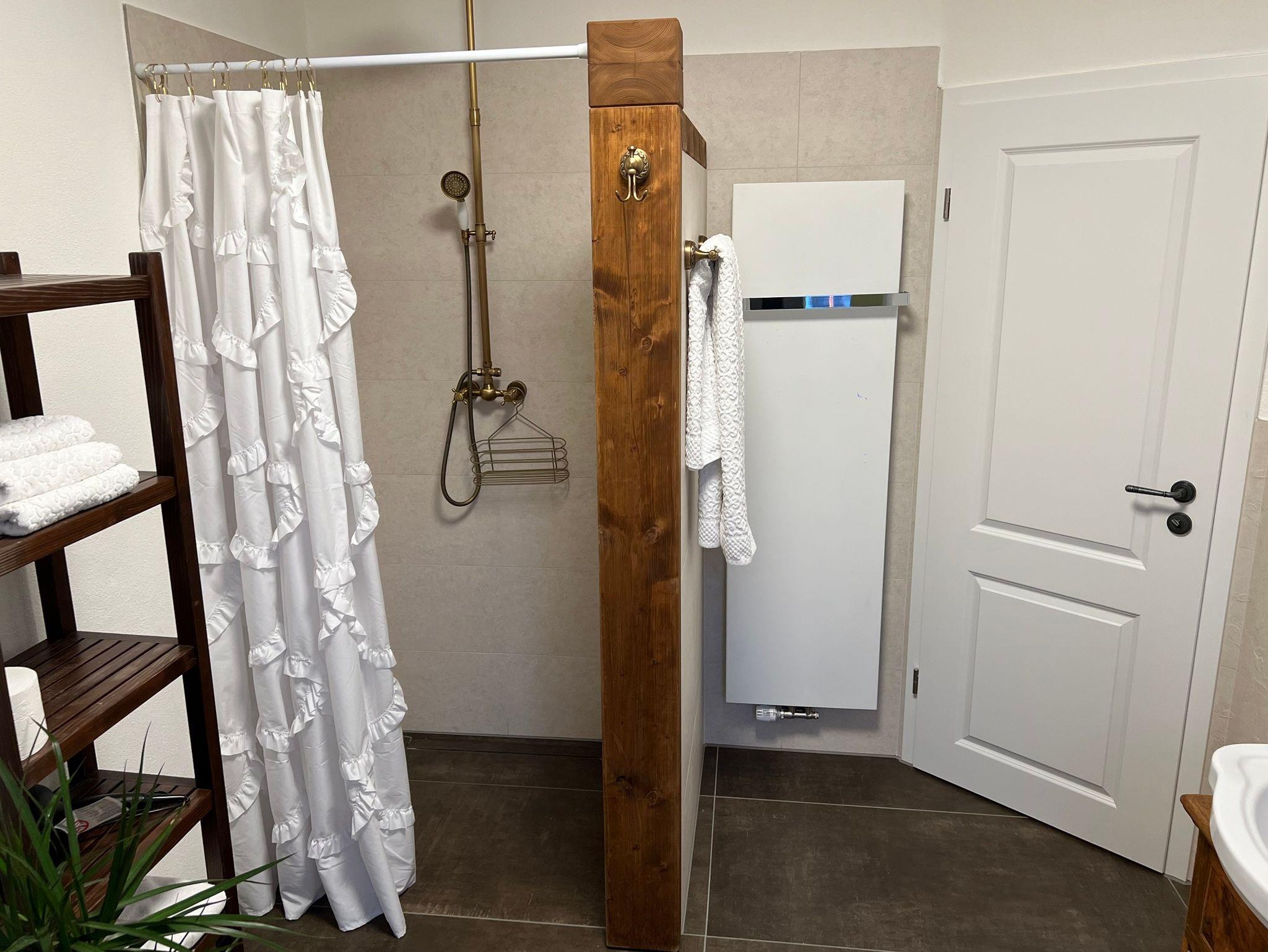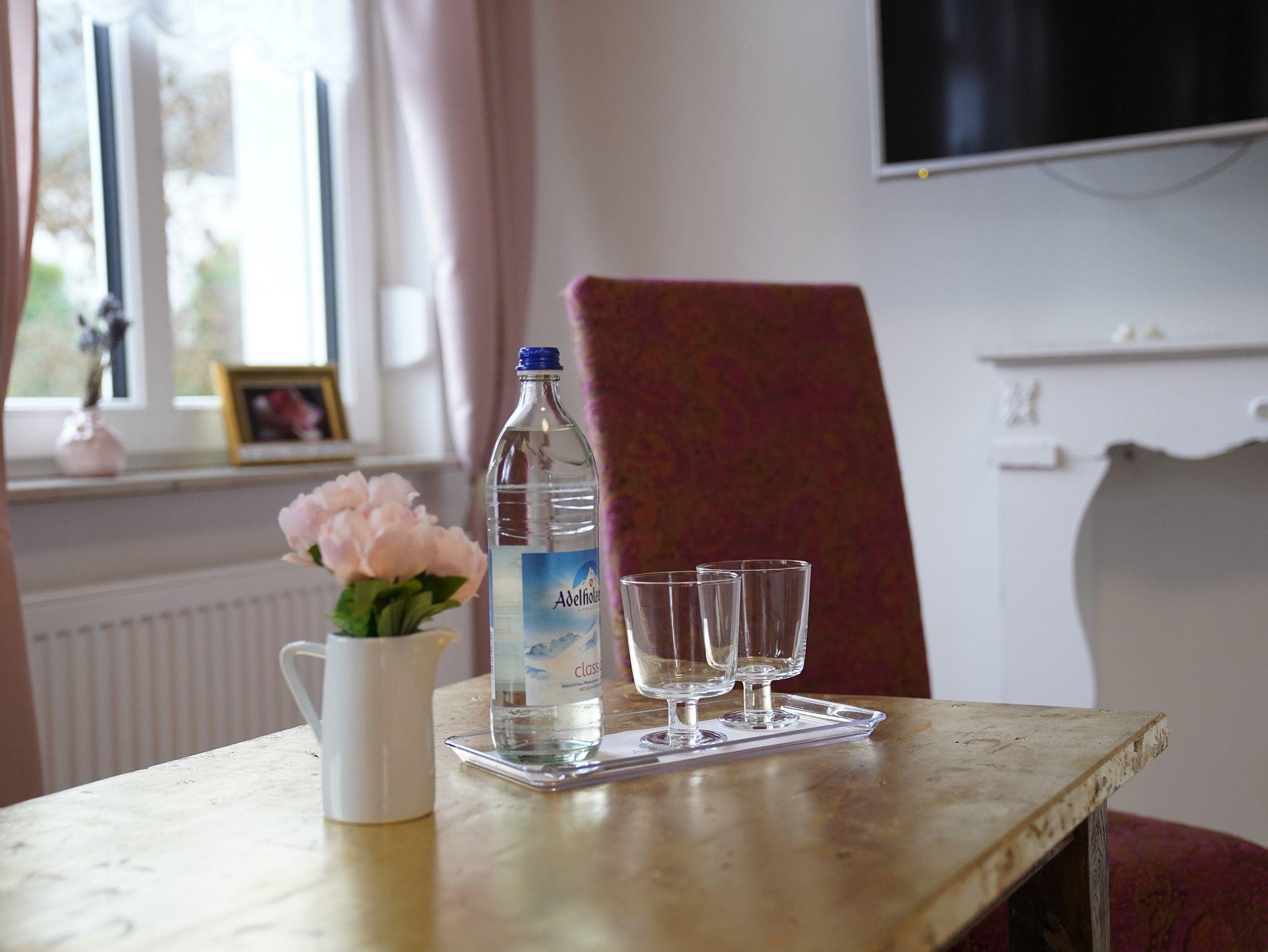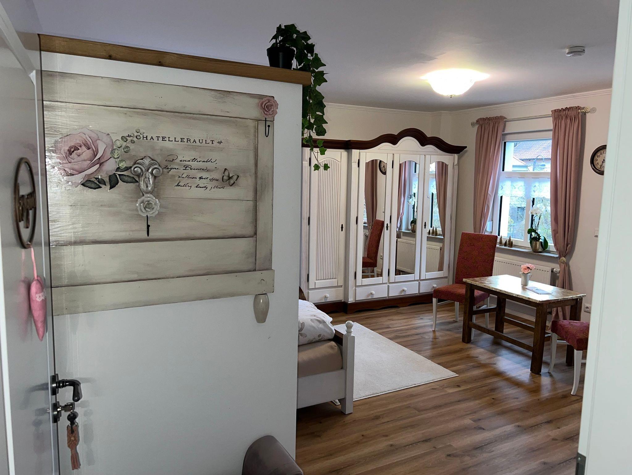 Das romantischste Zimmer, wie der Name schon verspricht, ist großzügig (30 qm), edel, nostalgisch und liebevoll gestaltet. Sie schlafen in einem Massivholz-Bett (180x200) und können auch von der kleinen Sitzgruppe aus das Fernsehprogramm auf dem Flachbildschirm genießen. Im Bad haben Sie eine ebenerdige Dusche mit Regenduschkopf und Handbrause, sowie Handtuchwärmer und einen Fön! Handtücher, freies WLAN und 1 Flasche Wasser bei der Anreise sind im Preis enthalten. Außerdem bieten wir einen Wäscheservice an!