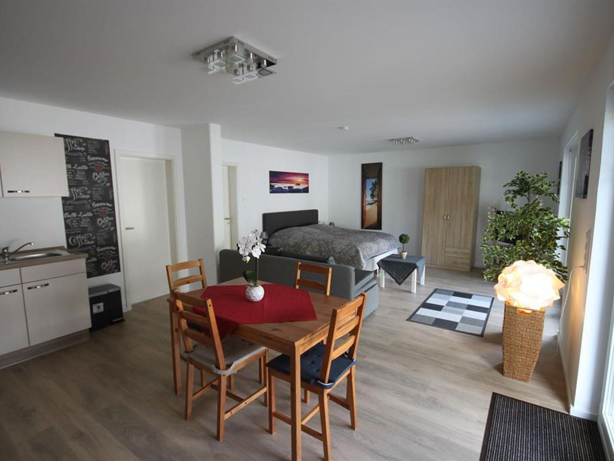 Eine Essgelegenheit mit Sitzmöglichkeiten für vier Personen ist vorhanden.