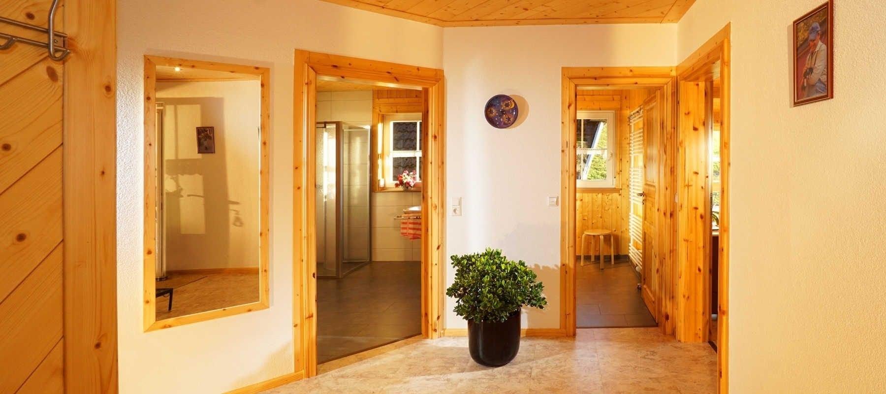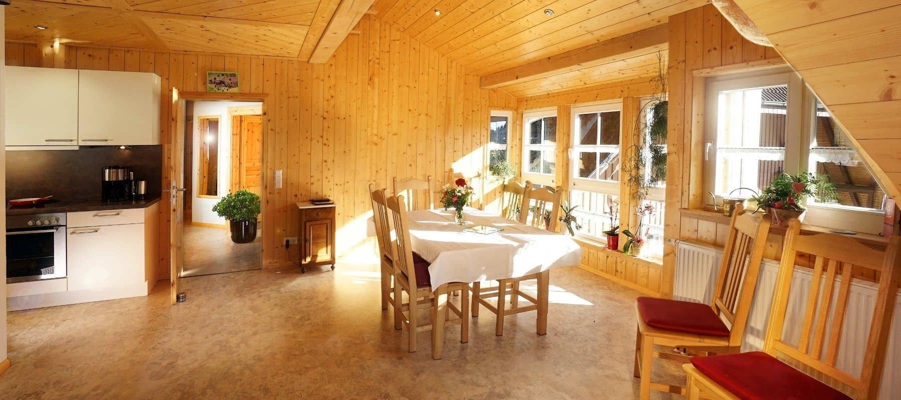 In der Ferienwohnung Blumenwiese wird Wohnen zum Erlebnis. Dank der ökologischen Bauweise, der Verwendung traditionell verarbeiteter Materialien, der offenen Gestaltung mit Schlafgalerie und der Ausstattung mit Echtholzmöbeln vom Dorfschreiner genießen Sie ein außergewöhnliches Wohngefühl und das bei höchstem Komfort.