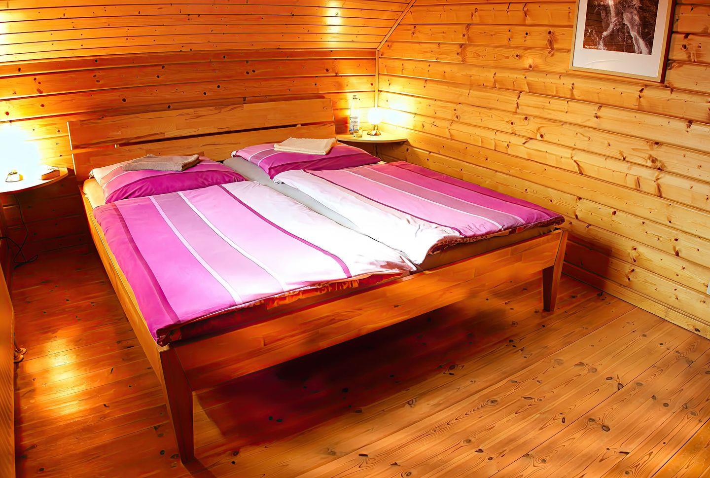 Ferienhaus 52 bietet zwei Schlafzimmer und einen großzügigen Wohnbereich mit Platz für bis zu 4 Personen. Die hellen Naturholzwände und unsere persönlichen Ausstattungen schaffen eine behagliche Wohnatmosphäre. Im Erdgeschoss befinden sich eine zum Wohnraum offene Küche, ein kleiner Abstellraum, ein WC sowie eine teilüberdachte Terrasse mit Mobiliar, welche fast den ganzen Tag Sonne hat. Vom Wohnraum führt eine Treppe ins Obergeschoss mit 2 Doppelzimmern, Dusche und WC.