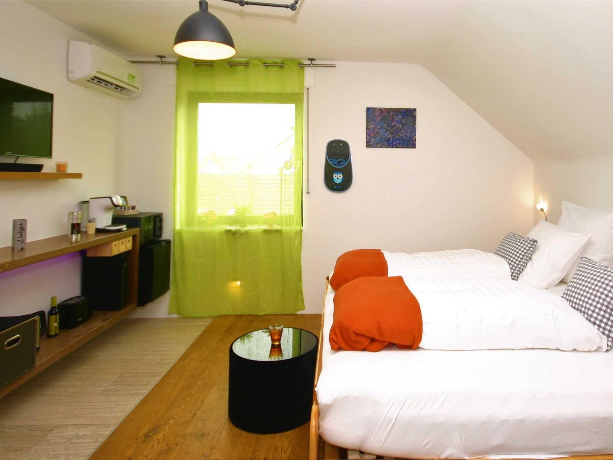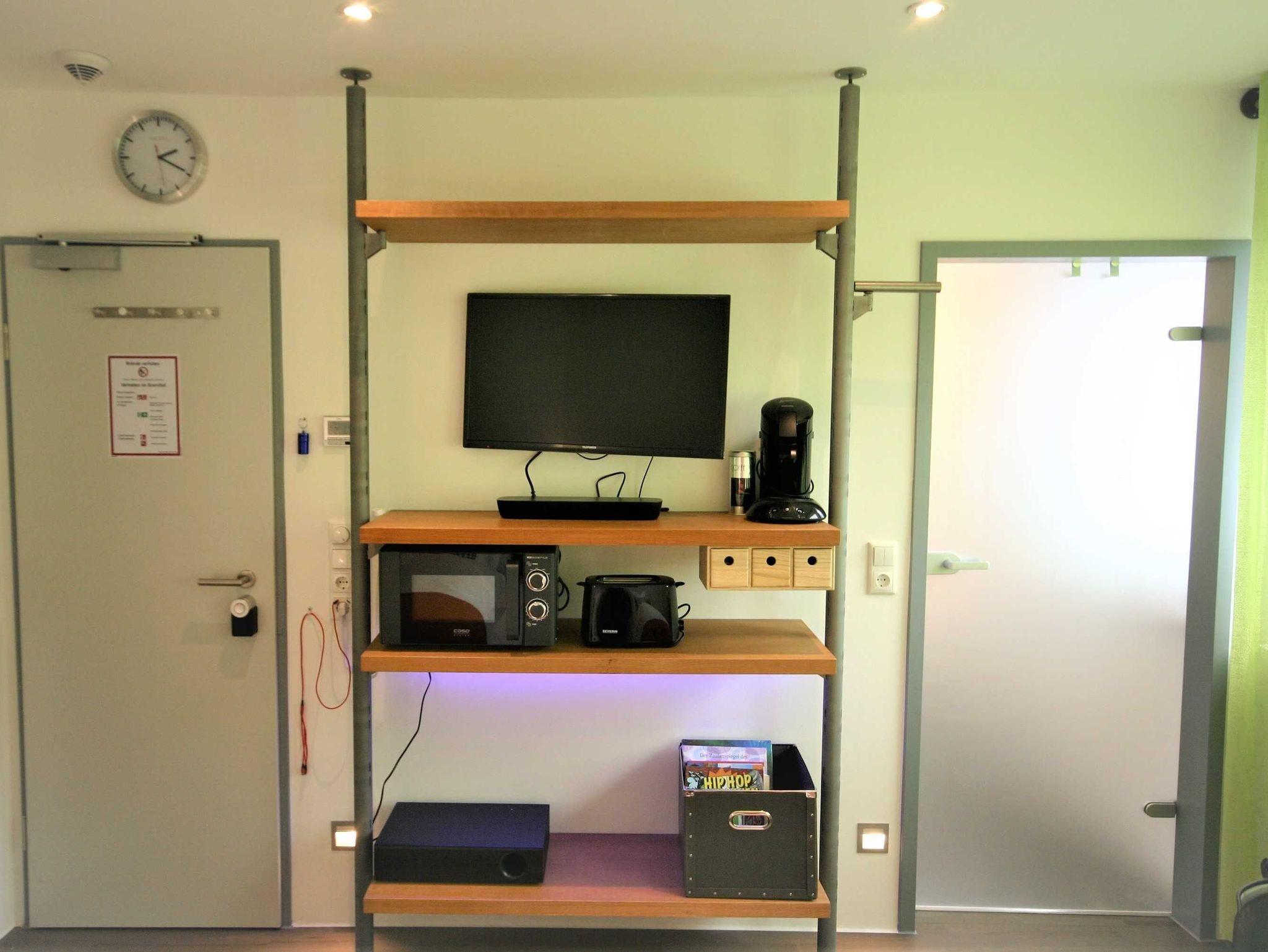 Einchecken, ankommen, Wohlfühlen. Unser 16 qm großes Zimmer bietet ein freundliches und sonniges Ambiente zum Wohlfühlen. Die großzügige Ausstattung liefert alles, was einen komfortablen Kurzurlaub abrundet: ein gemütliches Bett, mit einer Auswahl von verschieden großen Kissen, eine Mikrowelle, Kaffeemaschine und Geschirr zur Selbstverpflegung, sowie ein geräumiges Badezimmer, ausgestattet mit Handtüchern, Seifen und weiteren Hygieneartikeln.