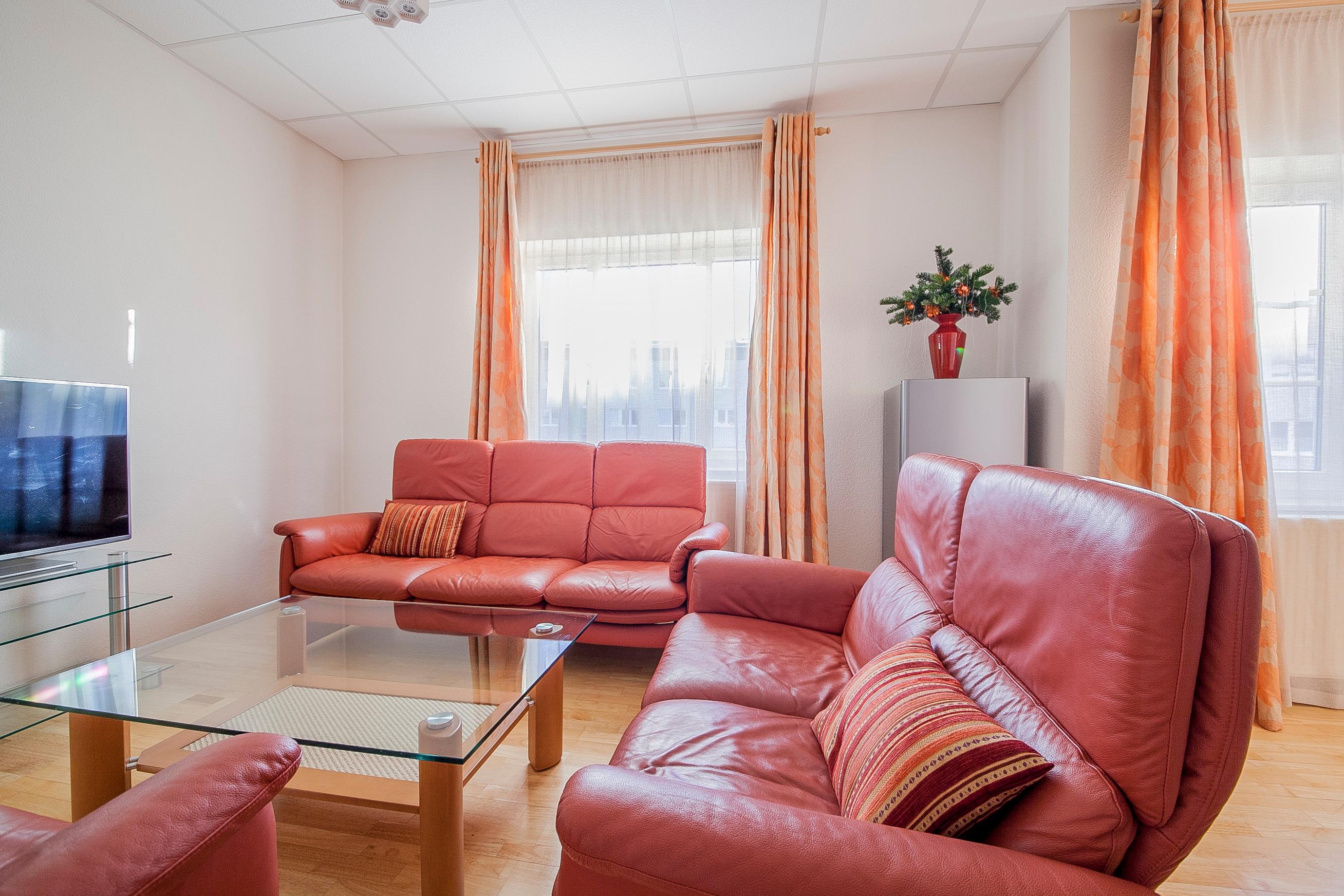 Die Ferienwohnung 1 verfügt auf der gesamten Fläche über einen edlen Parkettfußboden. Im großzügigen Wohnraum befindet sich eine einladende Couch, ein Tisch, und im Medienbereich ein 119 cm (47 Zoll) großes Full-HD-Fernseher mit eingebautem Satelliten-Receiver. Daran angeschlossen ist außerdem eine Loggia, die Sie beispielsweise als Schlafgelegenheit zum Entspannen oder Lesen nutzen können.