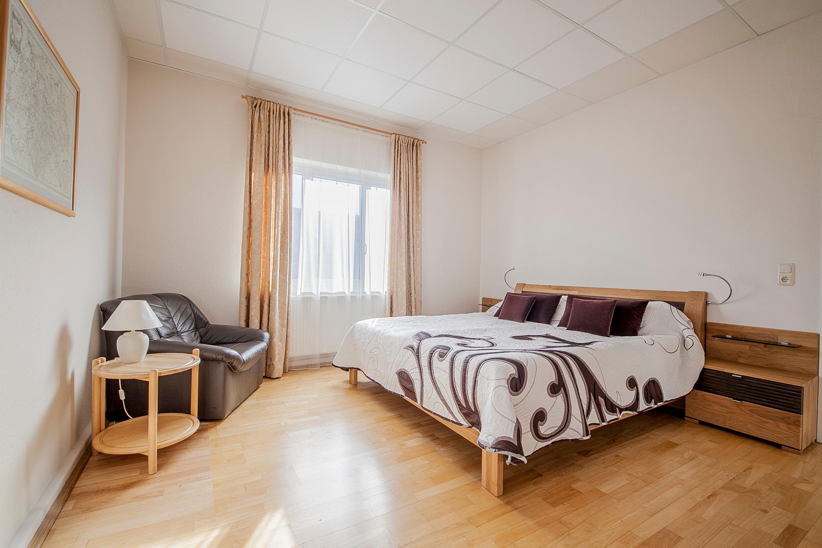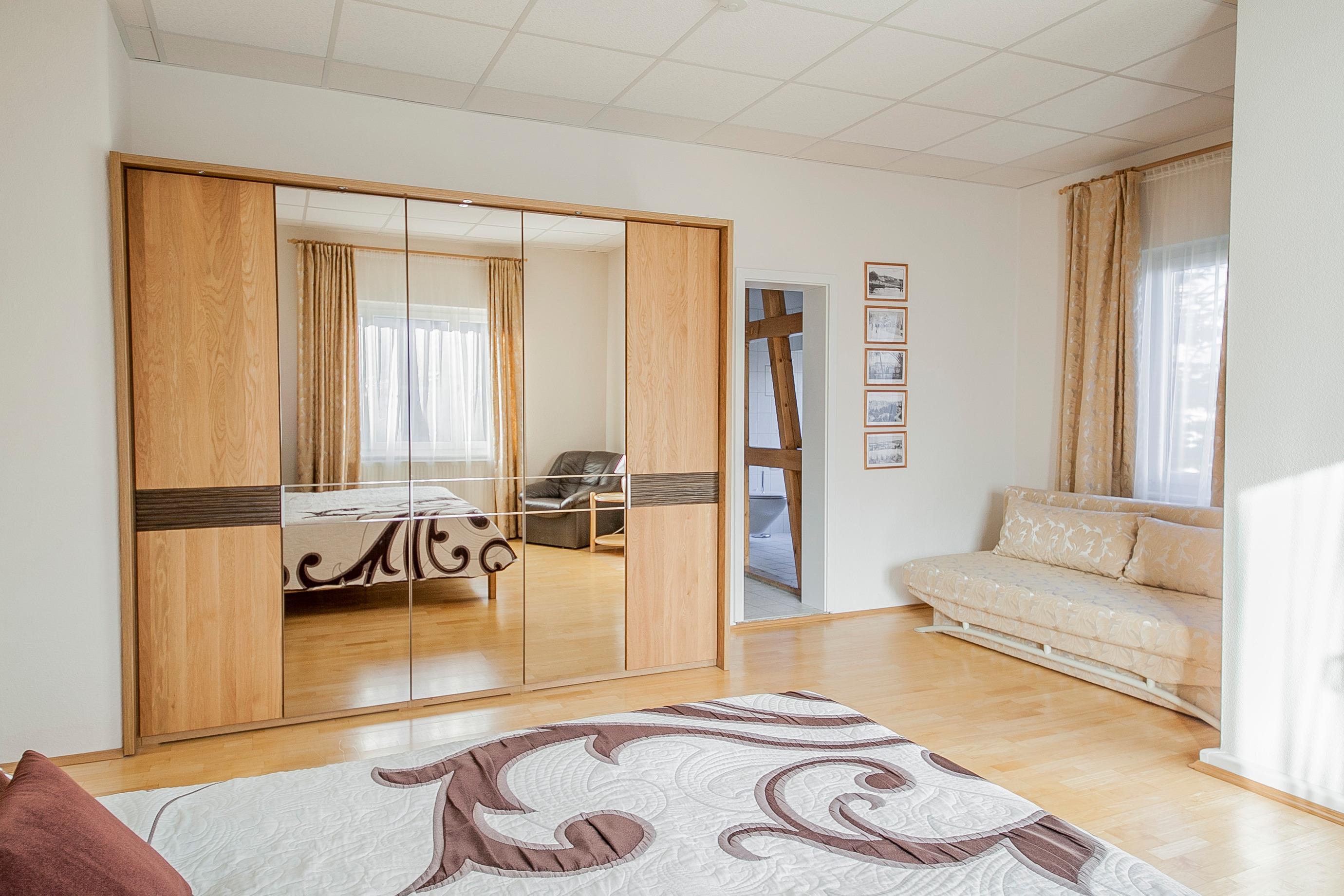 Für ein erholsamen Schlaf finden Sie bei uns ein gemütliches Doppelbett (200 x 180). Außerdem bietet das Zimmer ein bequemes Schlafsofa.