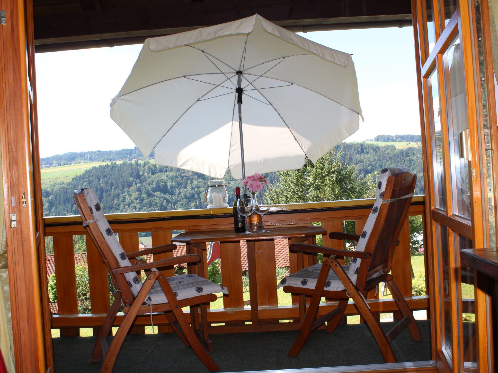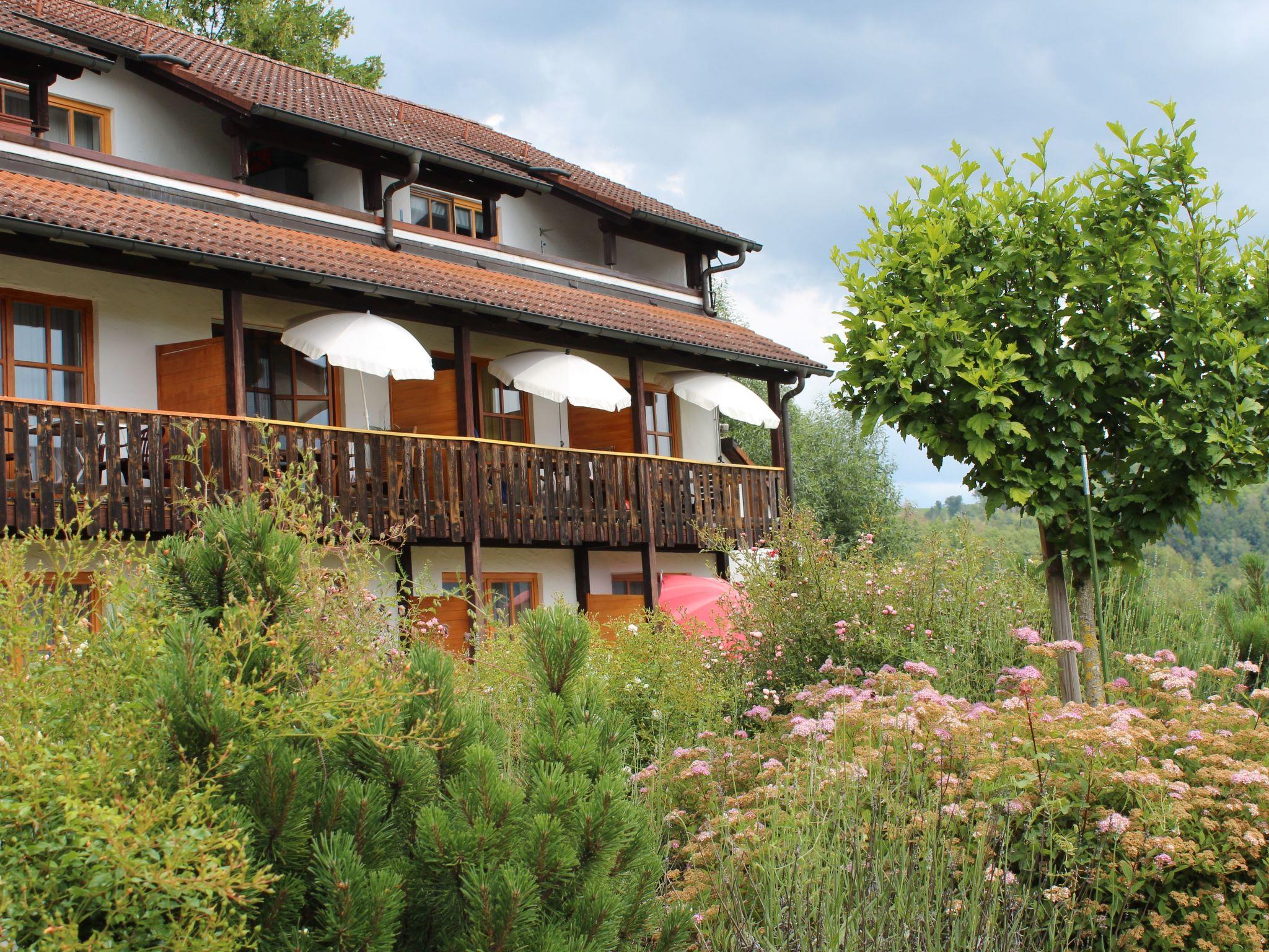 We rent out a very well-kept, Bavarian-style holiday flat with balcony, fitted kitchen, bright shower room and living room/bedroom. The view leads directly to the Danube and the Austrian mountains opposite. A car park is available. There is a small children's playground on the property.