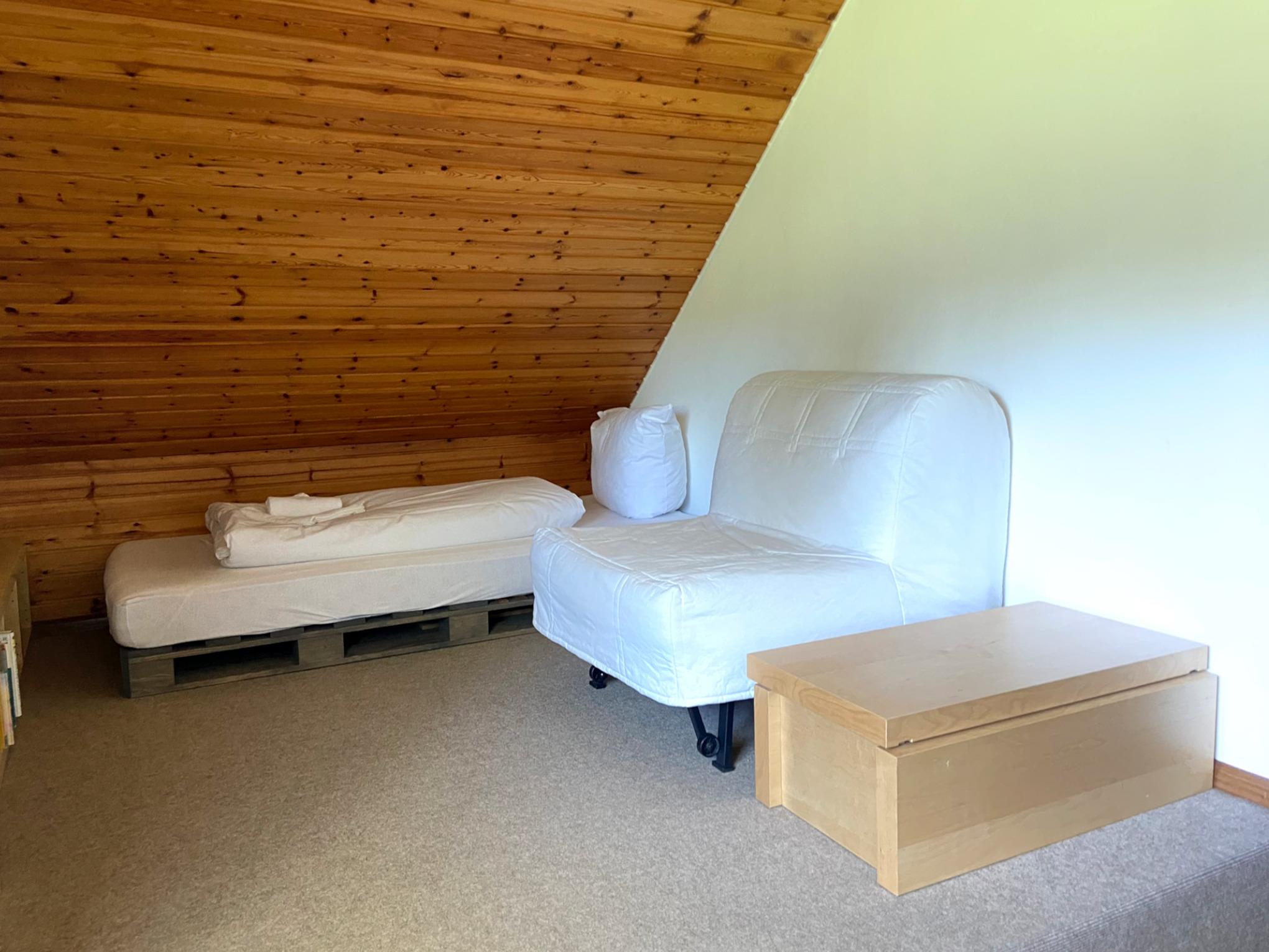 - Bedroom 2 (for 2 persons): 1 single bed and 1 sleeping chair, wardrobe and desk