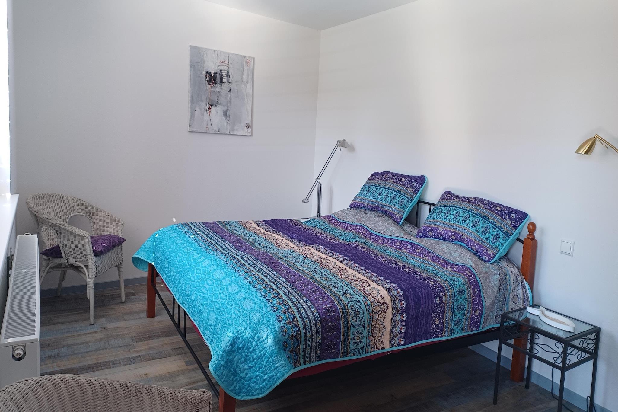 På 1. etage: (åbent køkken(elkedel, brødrister, komfur(Komfur med fire kogeplader, glaskeramisk), kaffemaskine(kaffetragt), ovn, vaffeljern, opvaskemaskine , køle-fryseskab), stue / spisestue(Fjernsyn(fladskærm, parabol), spisebord, sofahjørne), soveværelse(dobbeltseng(180 x 200 cm)), soveværelse(køjeseng(90 x 200 cm)), badeværelse(badekar, bruser, håndvask, toilet, føntørrer)) vaskemaskine, balkon, varme(central), havemøbler, parkering, liggestole, strygebræt, strygejern, Solcreme