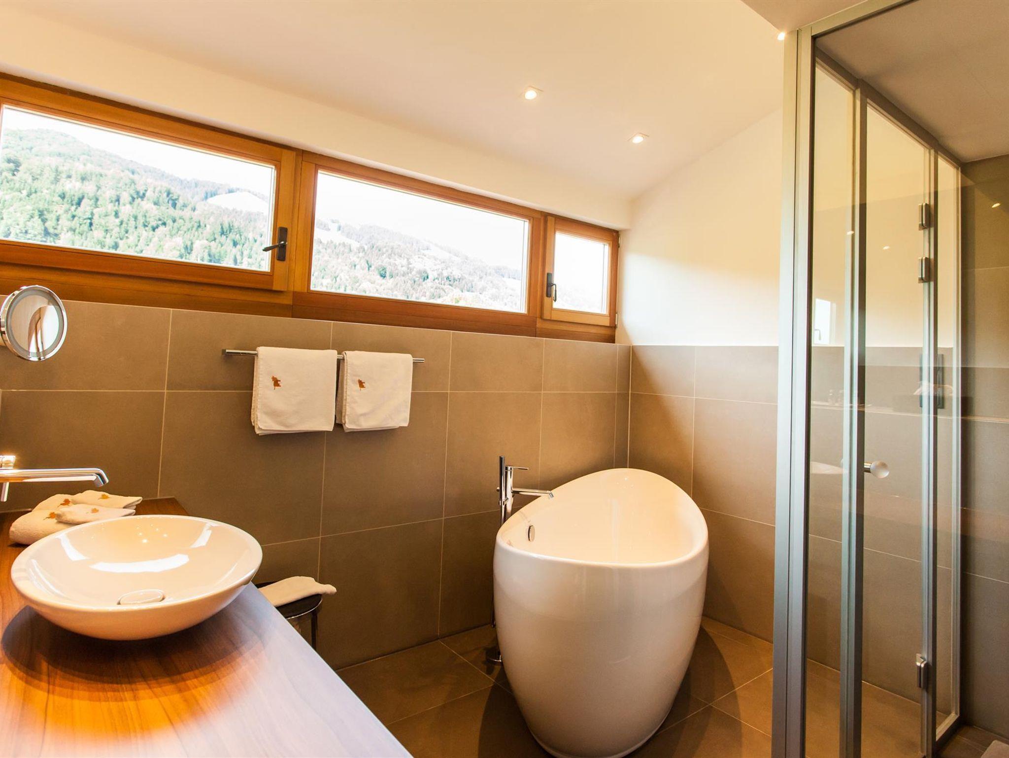 Unser Chalet Turmalin besticht auf 94 m2 mit alpinem Ambiente, einer eigenen Kombisauna (Finnische- und Biosauna) sowie wunderbarem Bergblick. Zwei getrennte Schlafzimmer mit großem Wohn- und Badbereich und separatem WC machen das Chalet ideal für die Familie oder einem Aufenthalt unter Freunden. Genieße auf den zwei Sonnenbalkonen unsere Landschaft und die gesunde Bergluft. Lasse dich von der luxuriösen Badausstattung, der im Schrank versteckten Designküche, oder dem Kaminofen begeistern. TV, Radio sowie unser kostenloses WLAN und die Nutzung des Direktwahltelefons ins deutsche Festnetz verstehen sich als selbstverständlich! Dein Auto kannst du jederzeit auf dem eigens für das Chalet Turmalin vorgesehenen Stellplatz in der Tiefgarage parken.