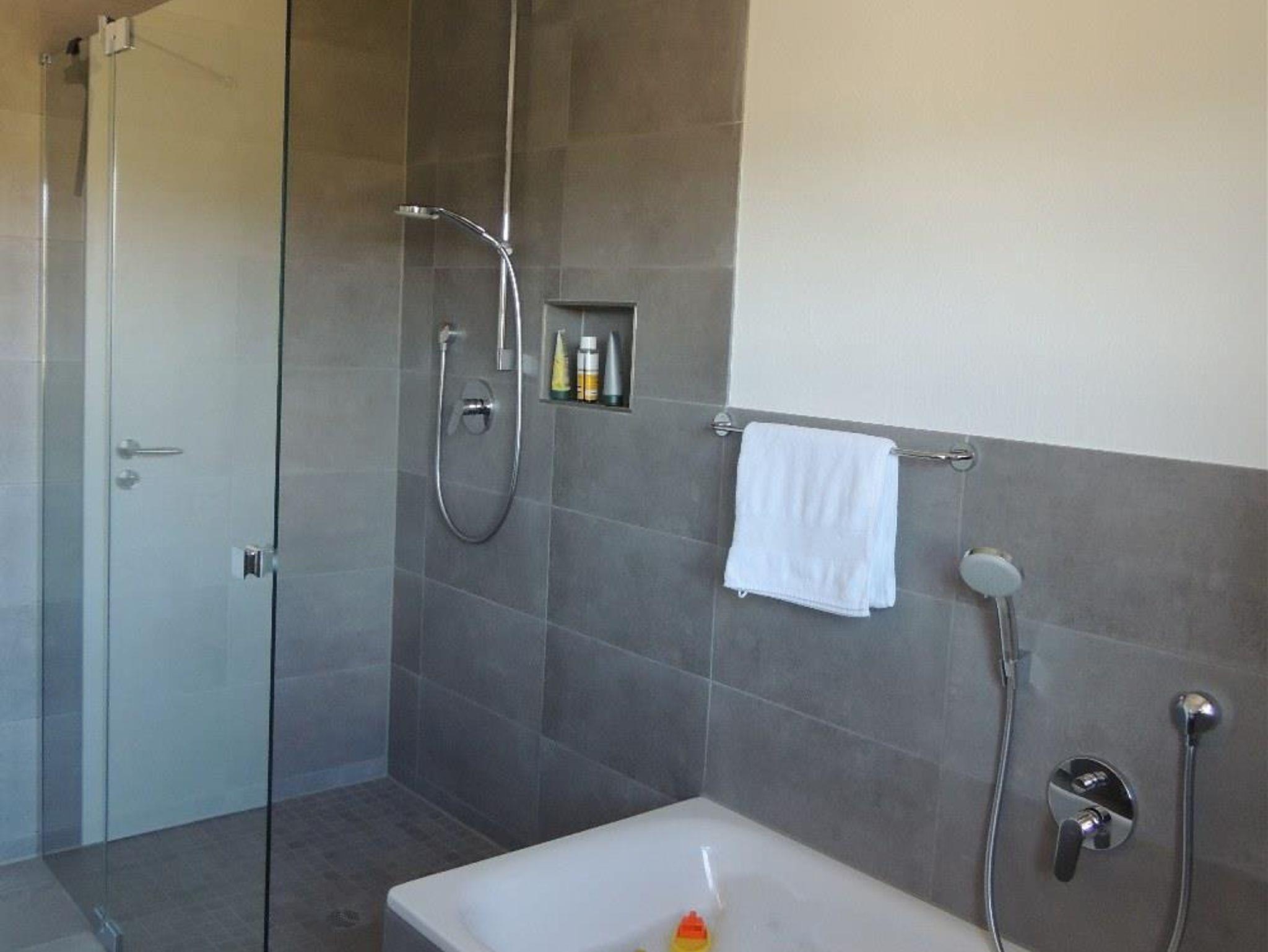 Die Ferienwohnung verfügt über ein Tageslichtbad mit begehbarer Dusche und Badewanne, ein separates WC sowie Fußbodenheizung.