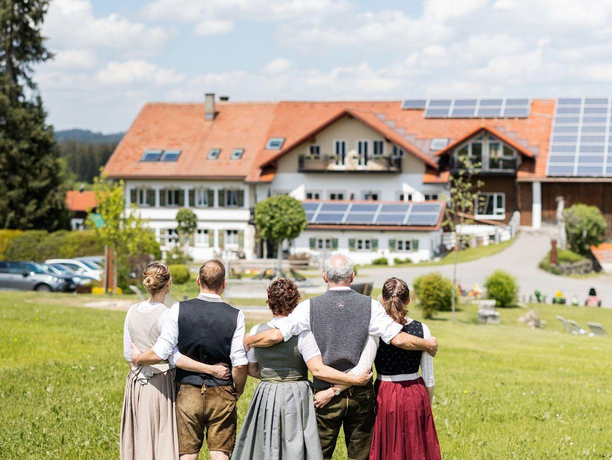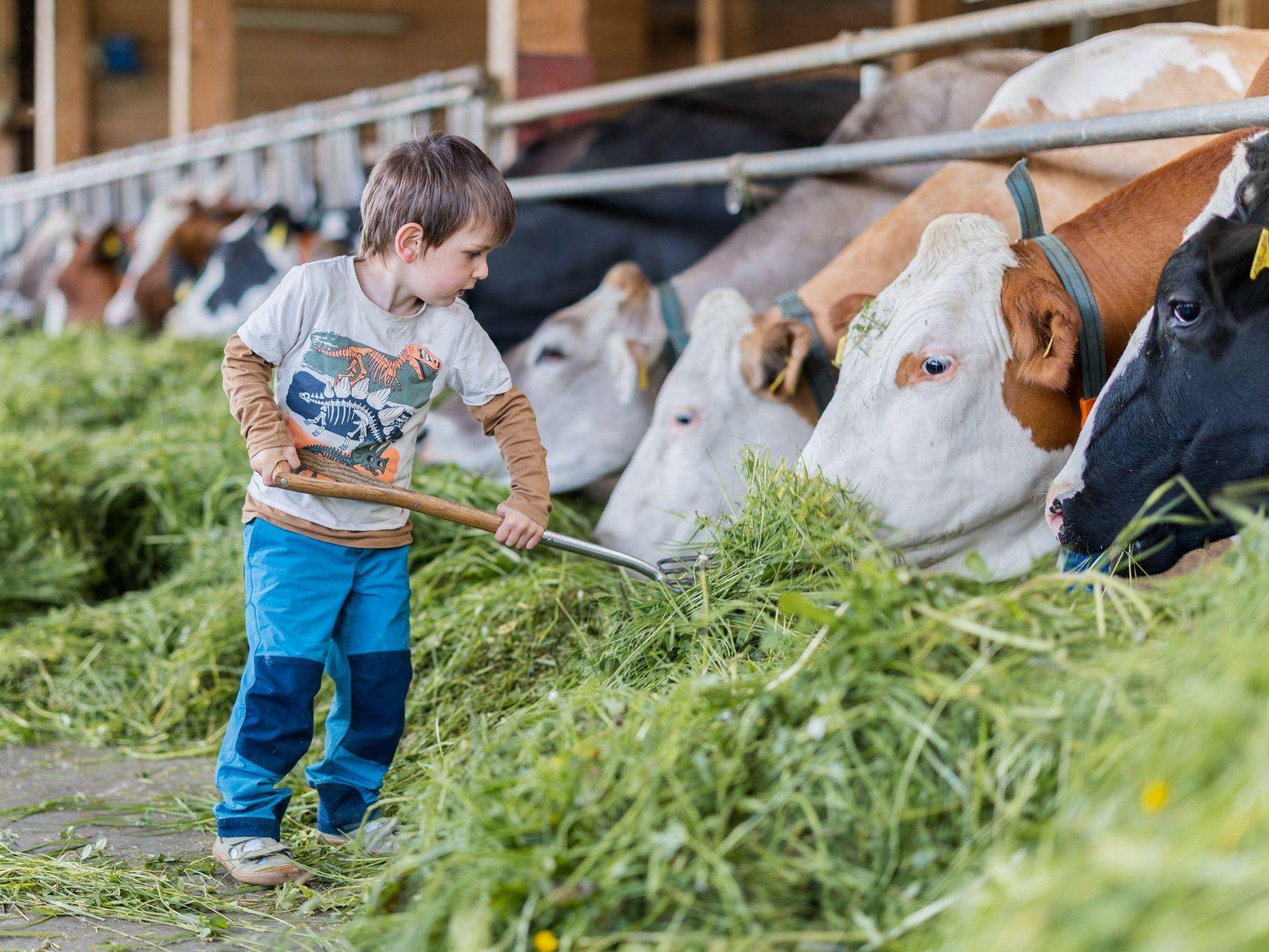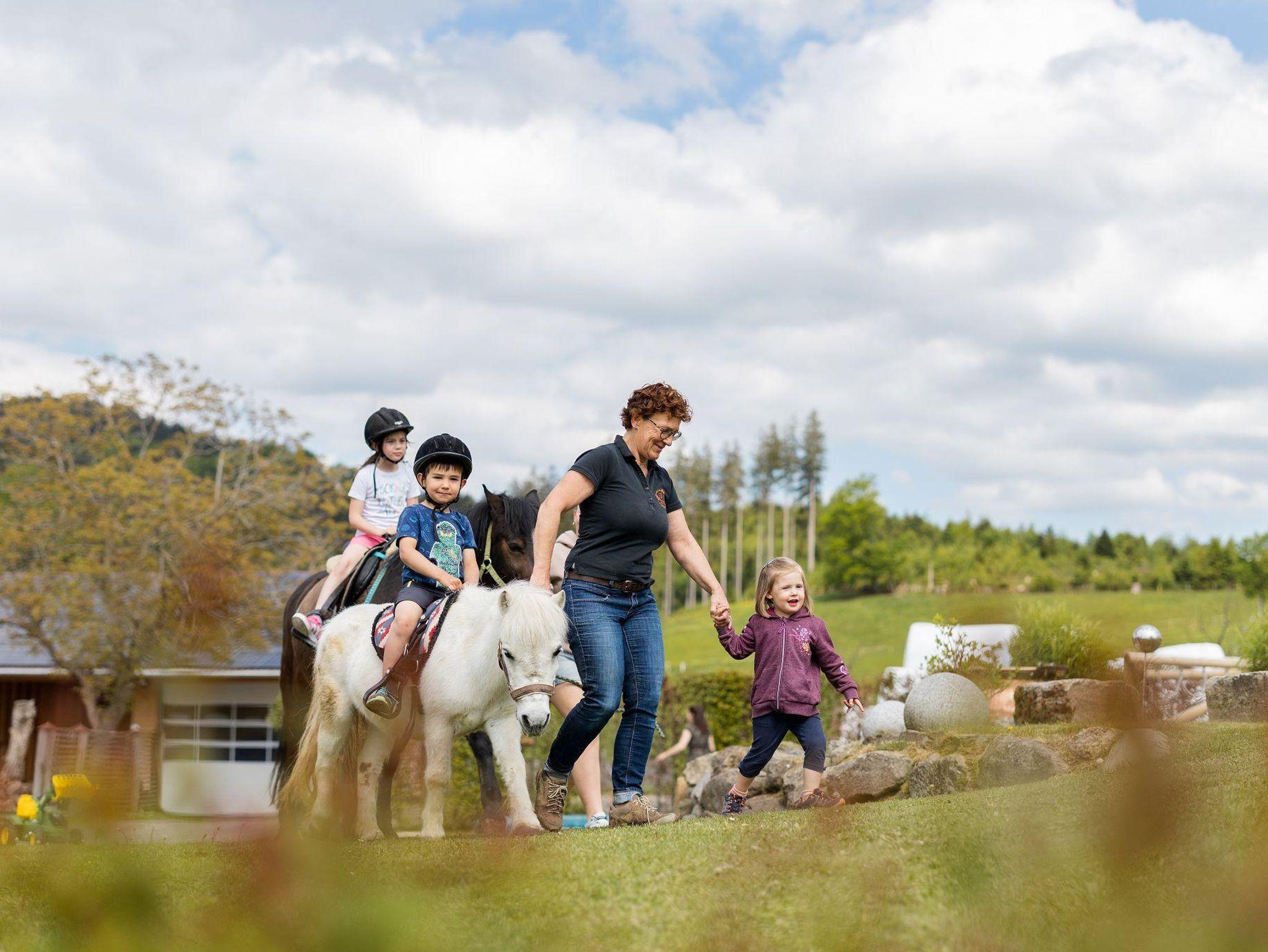 Unser Ferienhof bietet: komfortable Ferienwohnungen mit Balkon und Panoramafenstern zur Südseite - Frühstück im Aufenthaltsraum oder Room-Service - Brötchenservice - aktiver Biobauernhof mit Milchvieh, Kälbchen, Pony, Ziegen, Katzen und Hühnern - Spielstall mit Kleintieren und allerlei Spielzeug - Kinderspiel- und Fußballplatz - WLAN - Wanderwege und Loipeneinstieg direkt am Hof, Angebot von Wellnessmassagen vor Ort