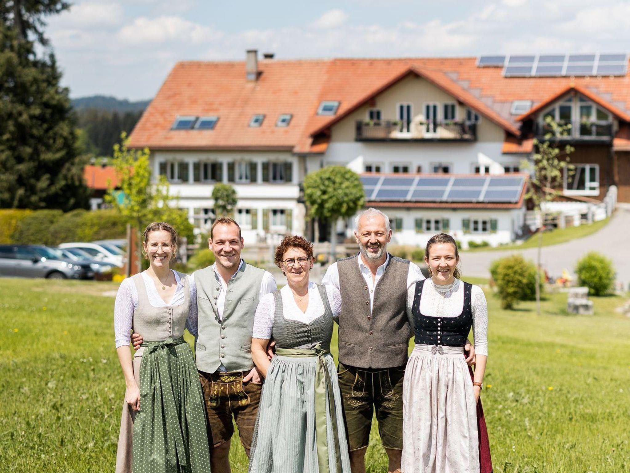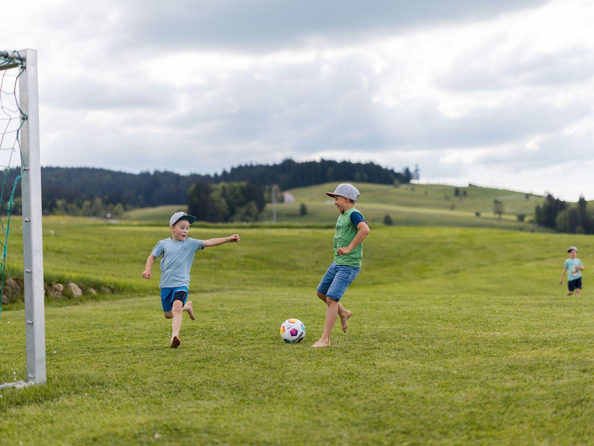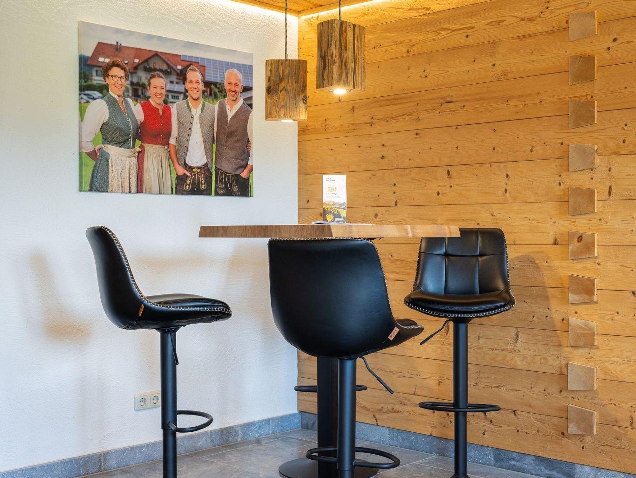 Unser Ferienhof bietet: komfortable Ferienwohnungen mit Balkon und Panoramafenstern zur Südseite - Frühstück im Aufenthaltsraum oder Room-Service - Brötchenservice - aktiver Biobauernhof mit Milchvieh, Kälbchen, Pony, Ziegen, Katzen und Hühnern - Spielstall mit Kleintieren und allerlei Spielzeug - Kinderspiel- und Fußballplatz - WLAN - Wanderwege und Loipeneinstieg direkt am Hof, Angebot von Wellnessmassagen vor Ort