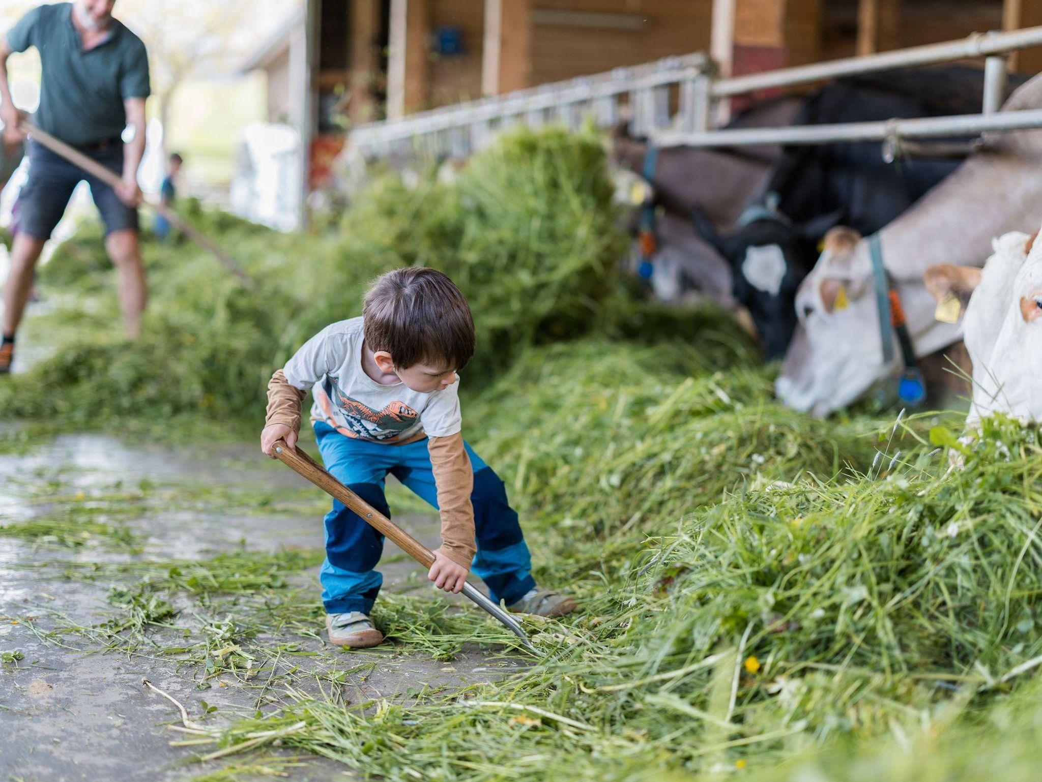 * aktiv-bewirtschafteter Biohof mit Rindern, Kälbern, Hühnern, Katzen, Hasen, Zíege und Pony