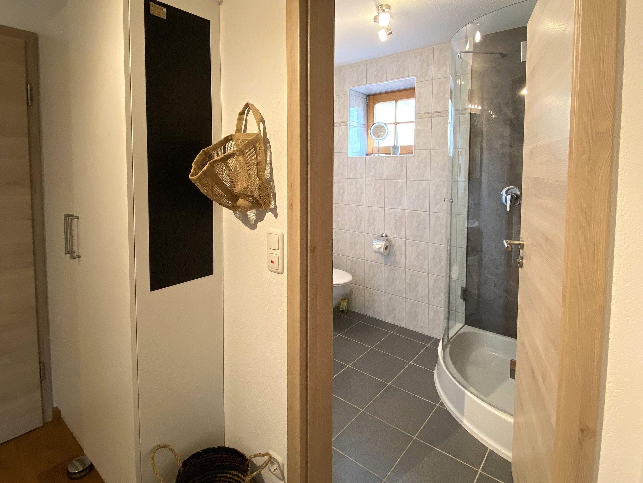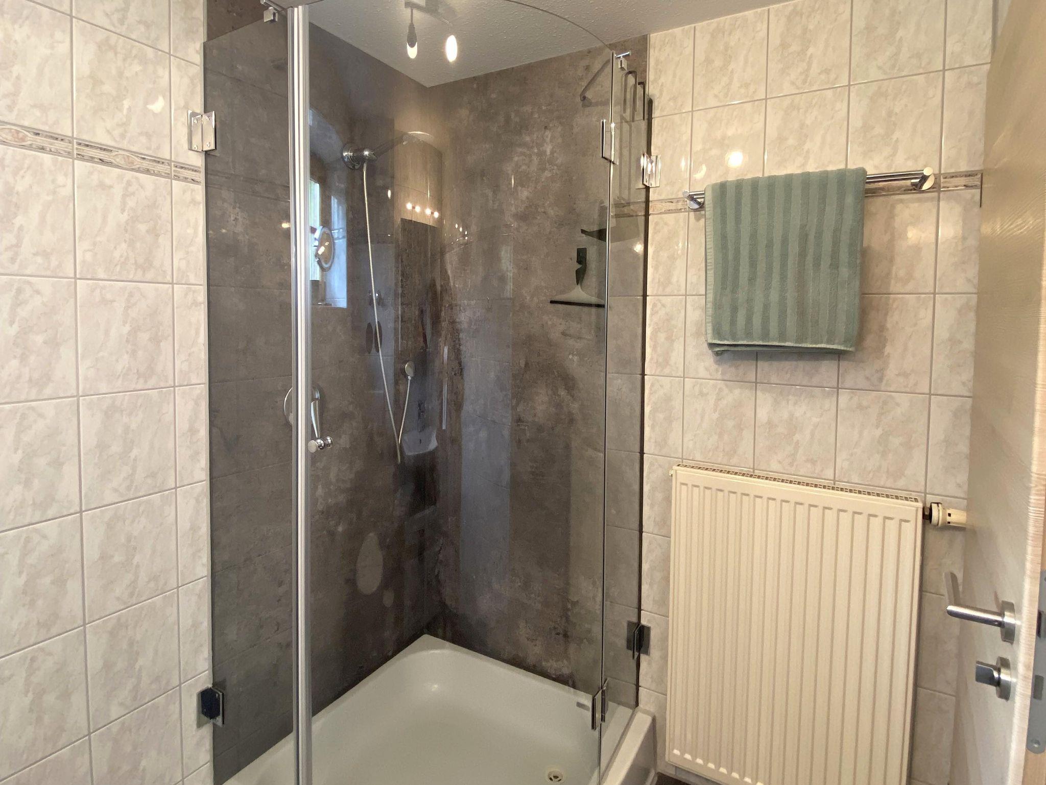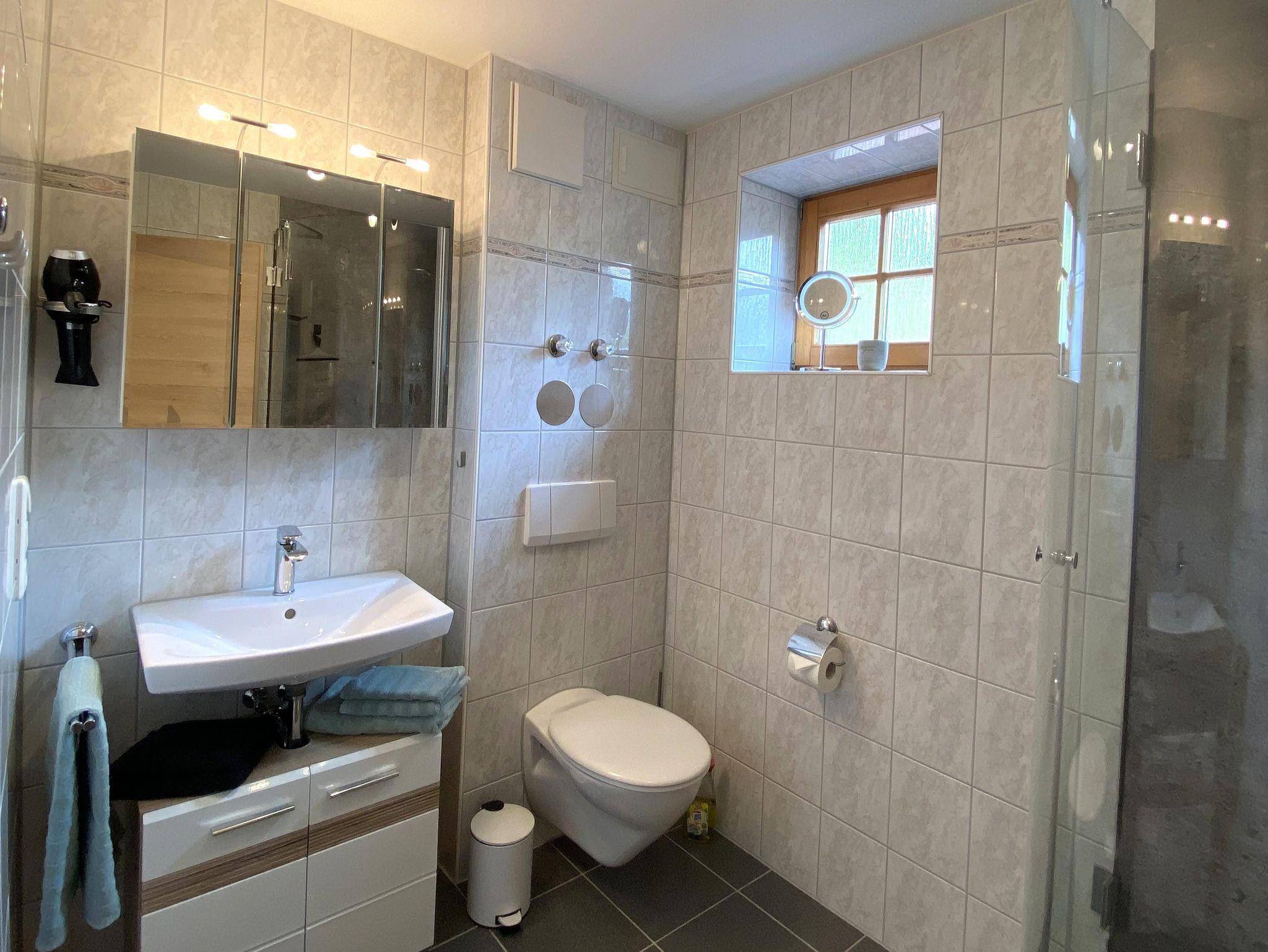 • Badezimmer mit Dusche und WC, Föhn, Kosmetikspiegel