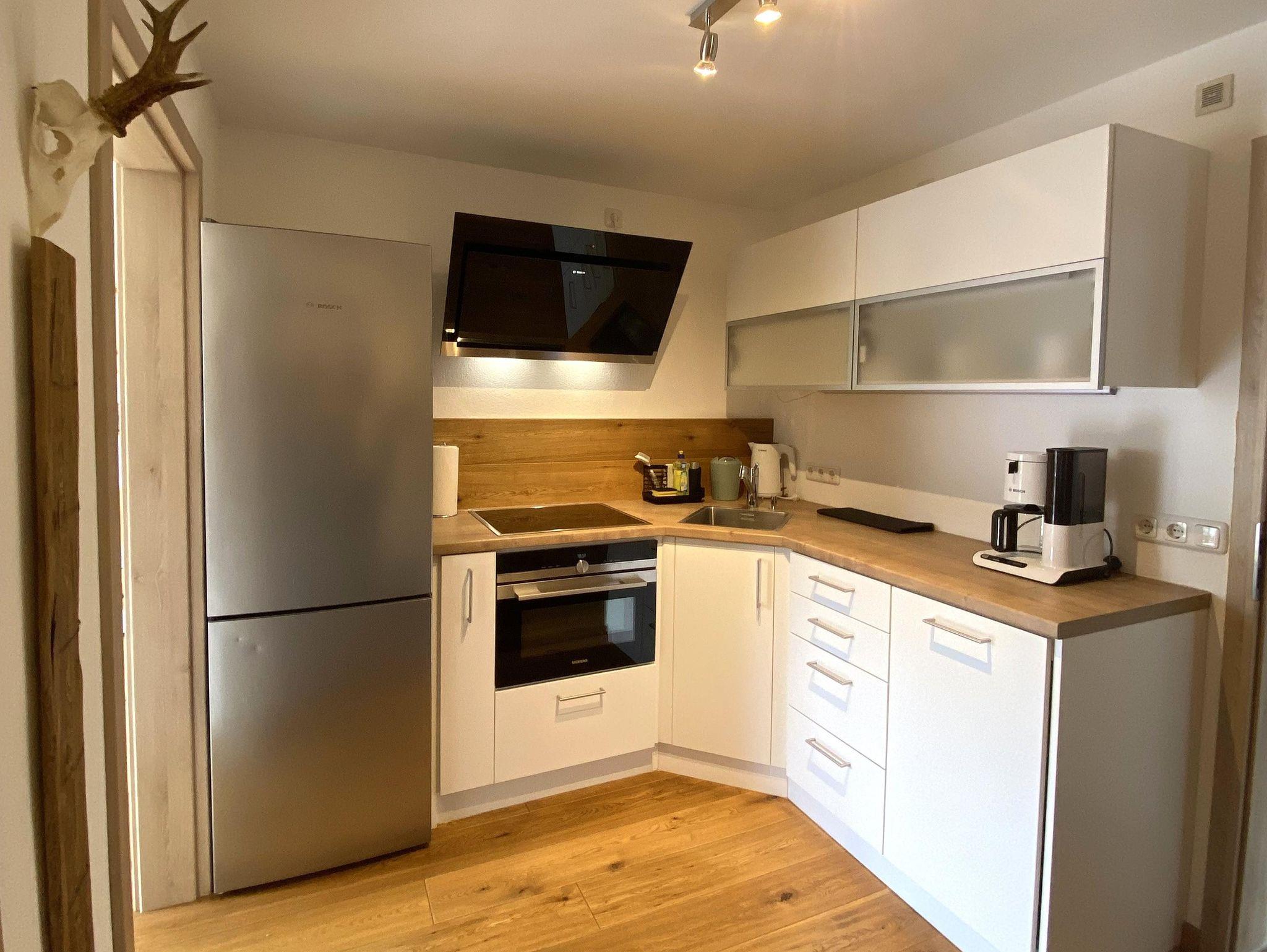 • Komplett ausgestattete Küche mit E-Herd, Mikrowelle, Backofen, Kühlschrank mit Gefrierfach, Geschirrspüler, Kaffeemaschine, Wasserkocher, Toaster…