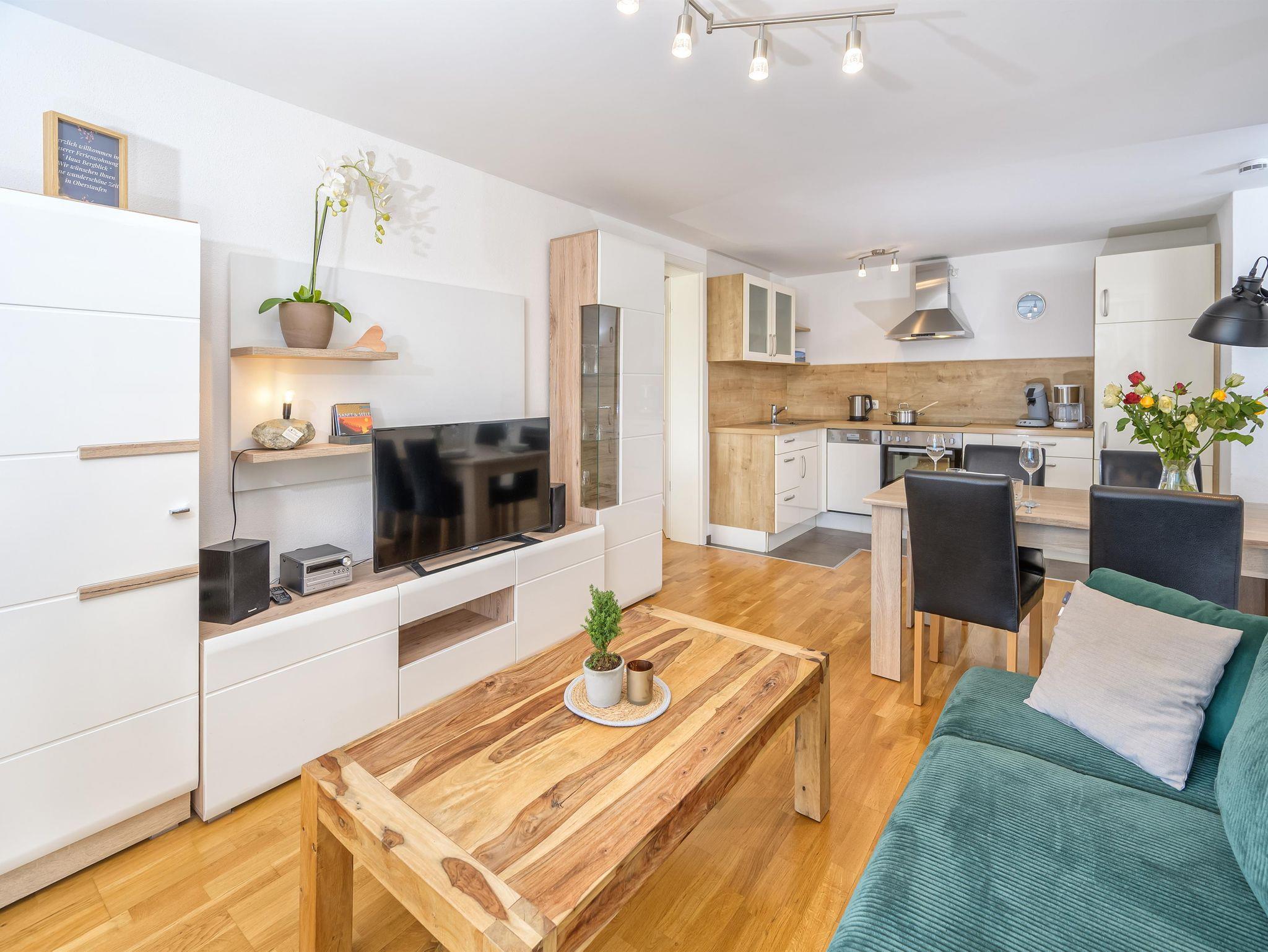 • modernes Ambiente im Wohnbereich mit integrierter EB-Küche