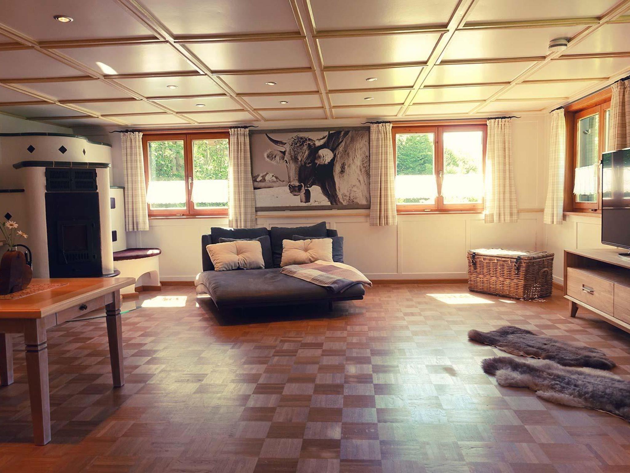 Im Sommer den Abend in entspannter Grillrunde auf der Terrasse ausklingen lassen und im Winter im Wohnzimmer vor dem Kachelofen ausspannen – das bietet unsere Ferienwohnung Juget. Im Erdgeschoß gelegen mit 99qm eignet sich die FeWo bestens für 4 Personen (Schlafsofa für 1-2 weitere Personen).