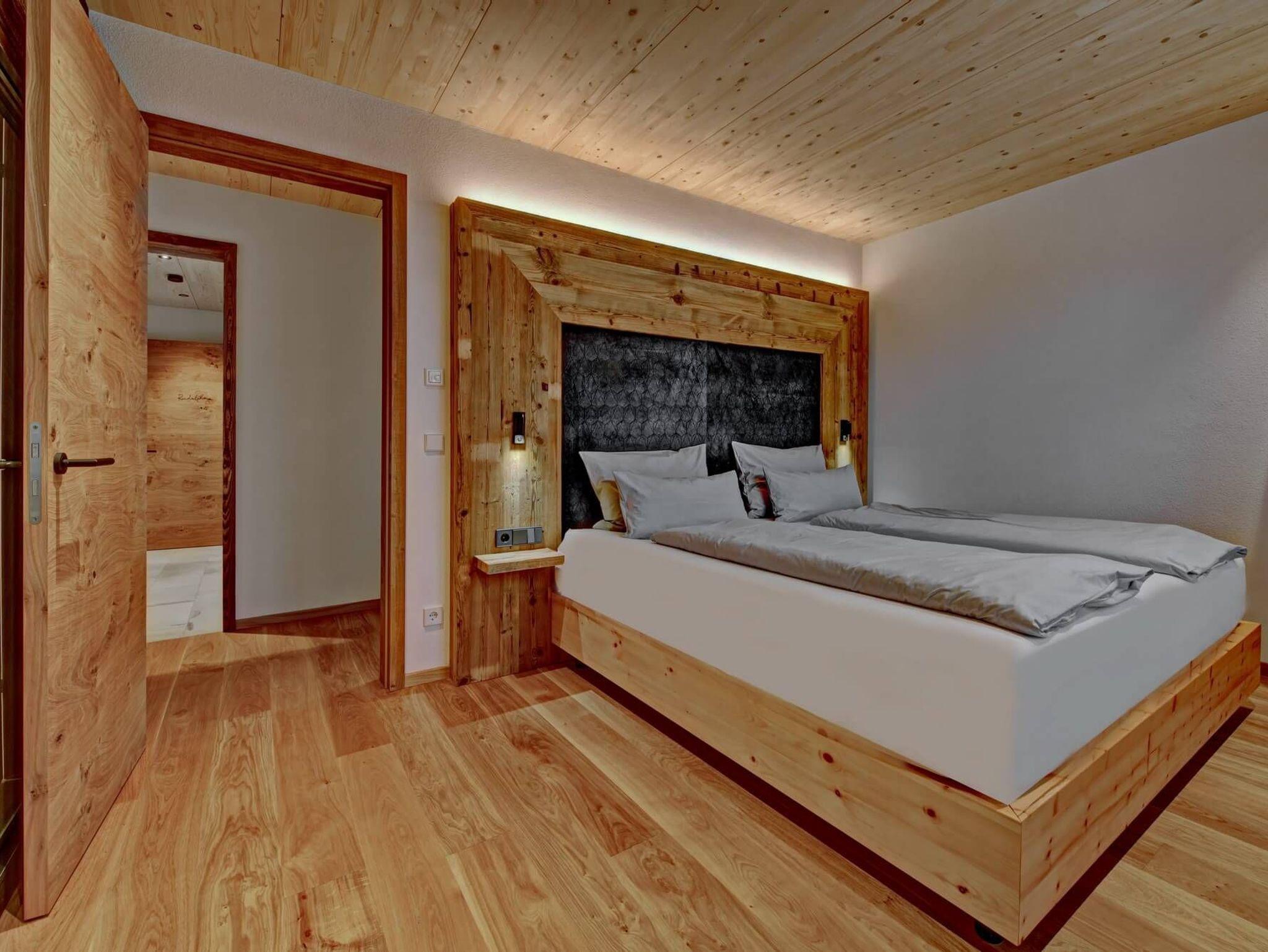 Genießen Sie den Ausblick auf der Loggia, entspannen auf dem hochwertigen Ledersofa und speisen an einer einzigartigen Tafel aus gebürsteter Platane. Nach einem Tag an der frischen Luft in dem Bergen genießen Sie die großzügige Regendusche in Ihrem Wohlfühltempel und erleben den Luxus einer eigenen Sauna im Chalet.