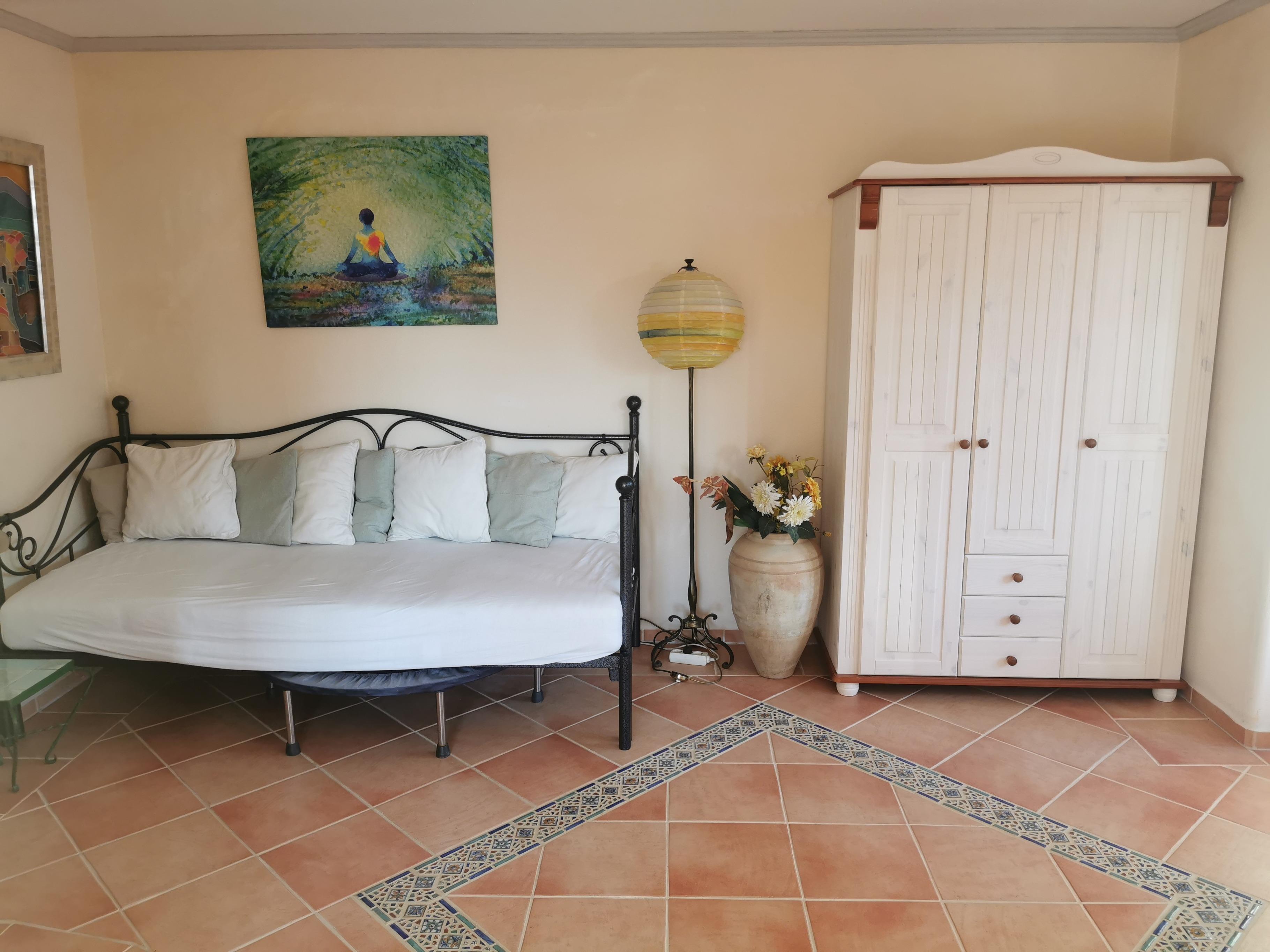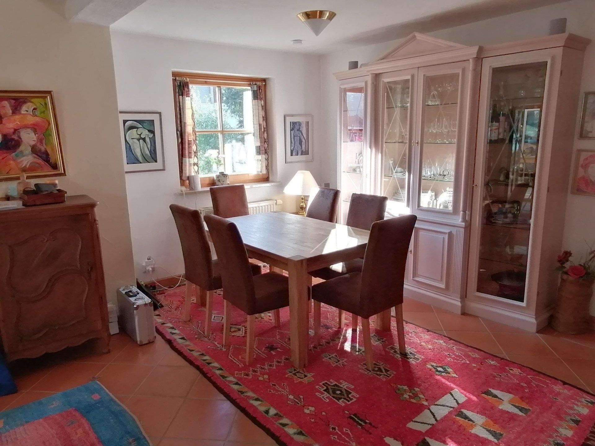 Diese wunderschöne Wohnung verfügt über 5 Zimmer mit liebevoller Ausstattung. Der große Wintergarten mit Fussbodenheizung im Erdgeschoss hat Zugang zum Garten mit kleiner Terrasse. Angrenzend befindet sich das große Wohnzimmer mit Couchecke, Fernseher und separatem Esstisch. Die typische Landhausküche mit Kühl-Gefrierschrank, Cerankochfeld, Mikrowelle etc. hat ebenfalls eine Eckbank mit Sitzgelegenheiten und Küchentisch. Die untere Etage verfügt zudem über eine Gästetoilette. Über die Wendeltreppe oder das Treppenhaus gelangen Sie in das erste Obergeschoss mit einem zum Wintergarten ausgebauten Balkon und einem weiteren Balkon mit Bergblick sowie ein Badezimmer mit Dusche und Badewanne. Dort befinden sich auch Schlafzimmer mit Boxspringbett sowie ein weiteres kombiniertes Wohn-Schlafzimmer mit einem Einzelbett und einem Doppelbett und einem Zugang zum Balkon. Eine Garage mit Rolltor und Steuerung per Fernbedienung steht Ihnen ebenfalls zur Verfügung.