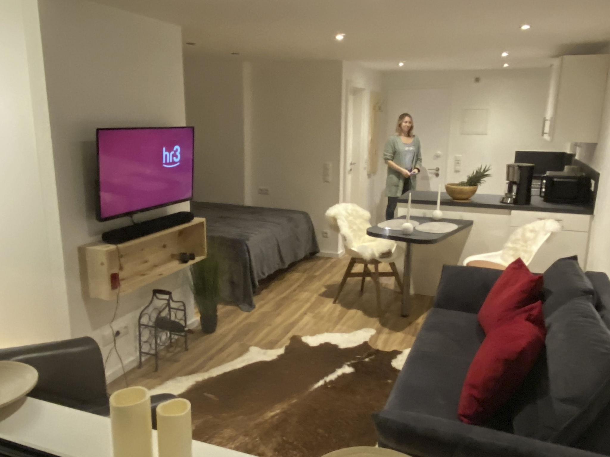 A large and modern TV set with sound bar and W-LAN provide good entertainment and fulfil modern digital needs.