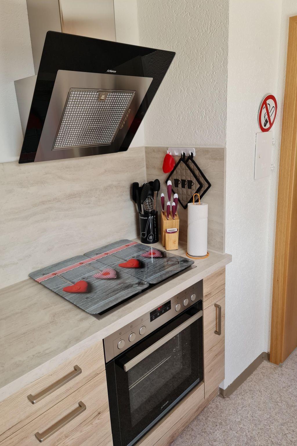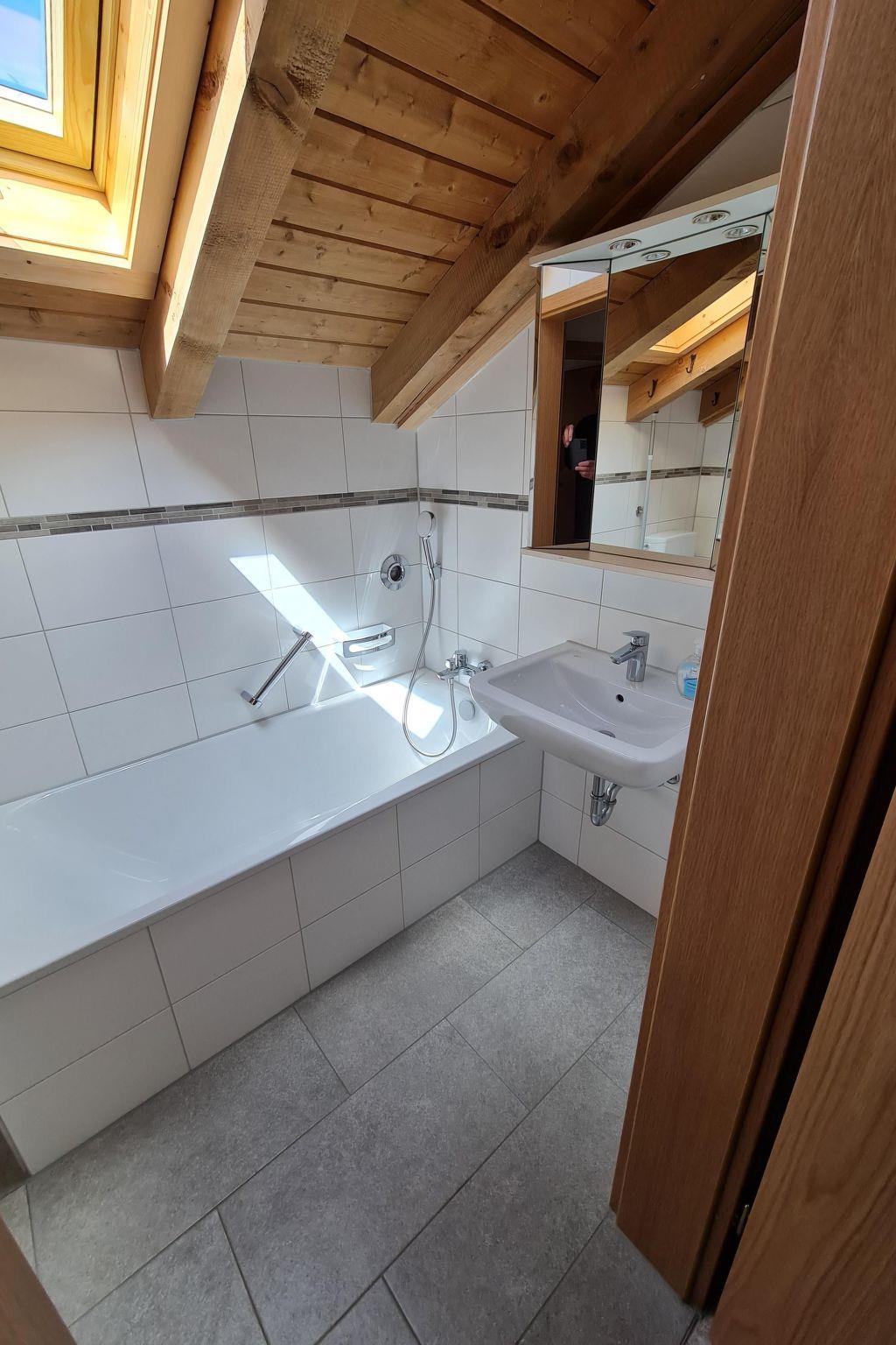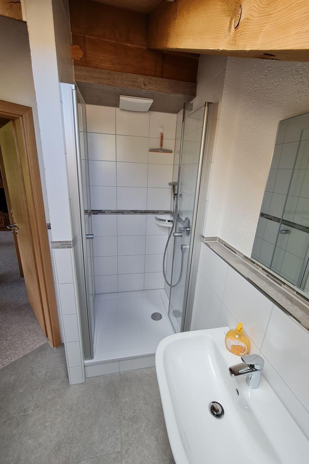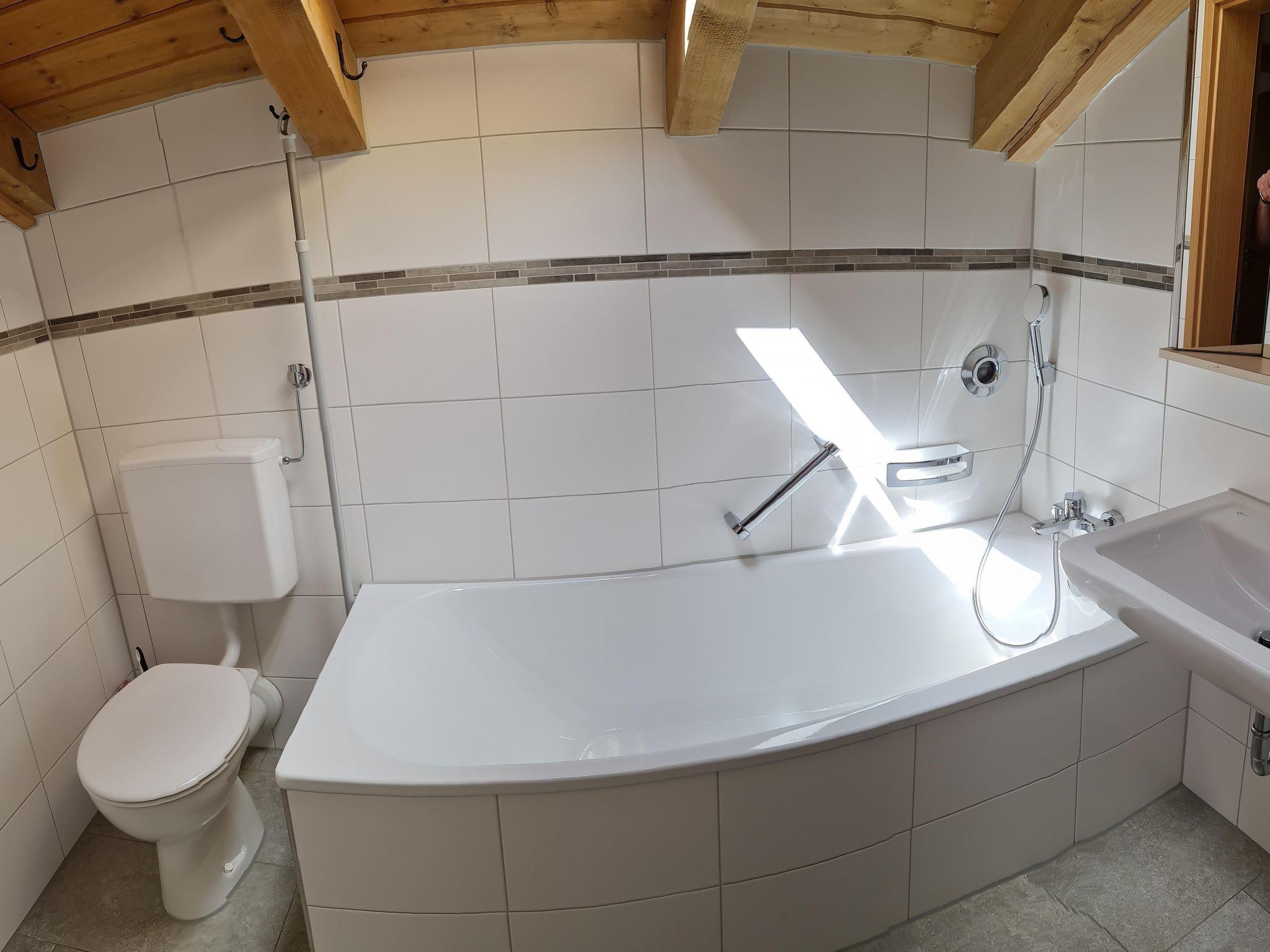 Cosy and rustically furnished holiday flat for 2 to 6 people on the top floor. 1 living room with large east-facing balcony and panoramic windows with a view of the garden and woods. An extra bed can be placed in the living room. 2 bedrooms with double beds and west-facing balcony; kitchen with corner bench; one bathroom with bath + WC and one shower + WC; WiFi;