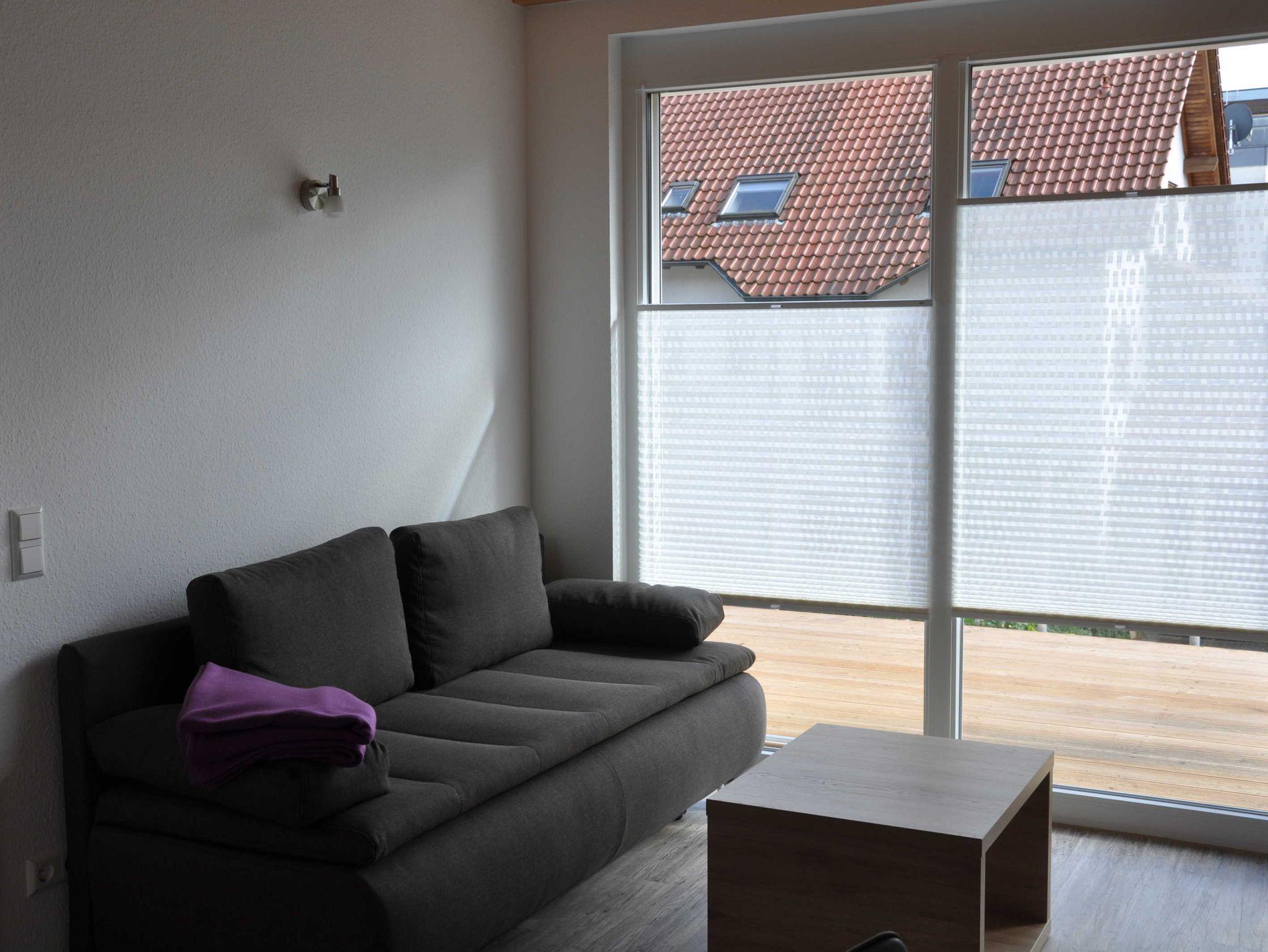 Die Ferienwohnung Traminer verfügt über ein Wohnzimmer mit zusätzlichem Schlafsofa. Für einen erholsamen Schlaf steht ein Doppelbett mit einer Größe von 2x2 m bereit . Die hochwertige Küche mit Herd, Backofen, Mikrowelle, Kühlschrank und Spülmaschine lädt zum Kochen ein. Im Sommer genießen Sie Ihre Speisen und den Wein aus dem HeilbronnerLand auf der Terrasse.