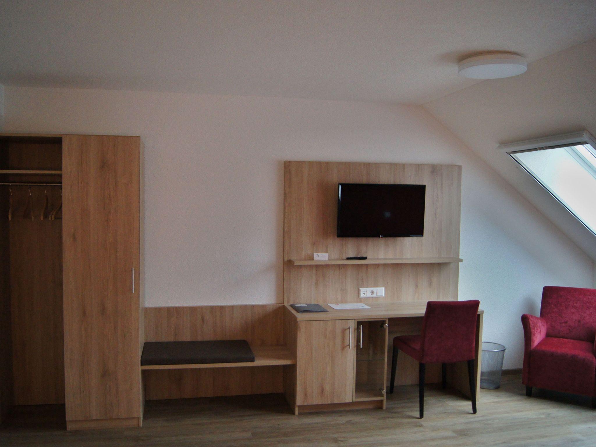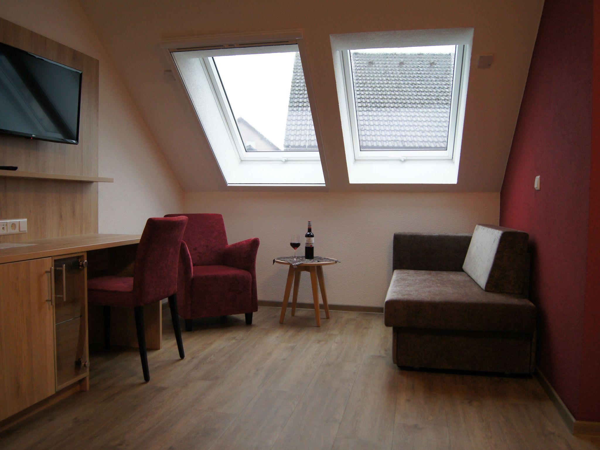 Unser Einzelzimmer Trollinger ist im Dachgeschoß, auf der Süd-Westseite.