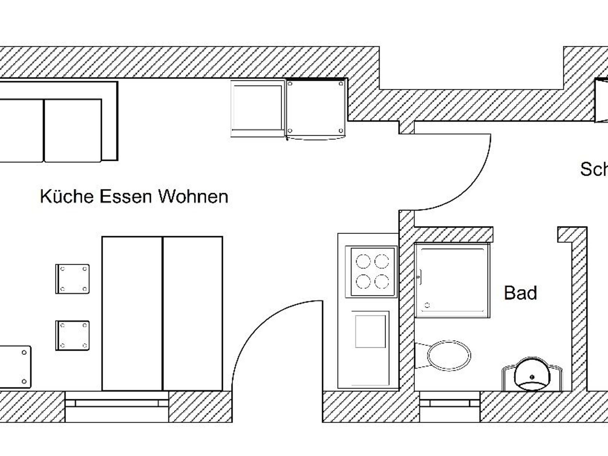 Die Wohnung hat ca. 38 m² und ist geeignet für maximal 3 Personen.