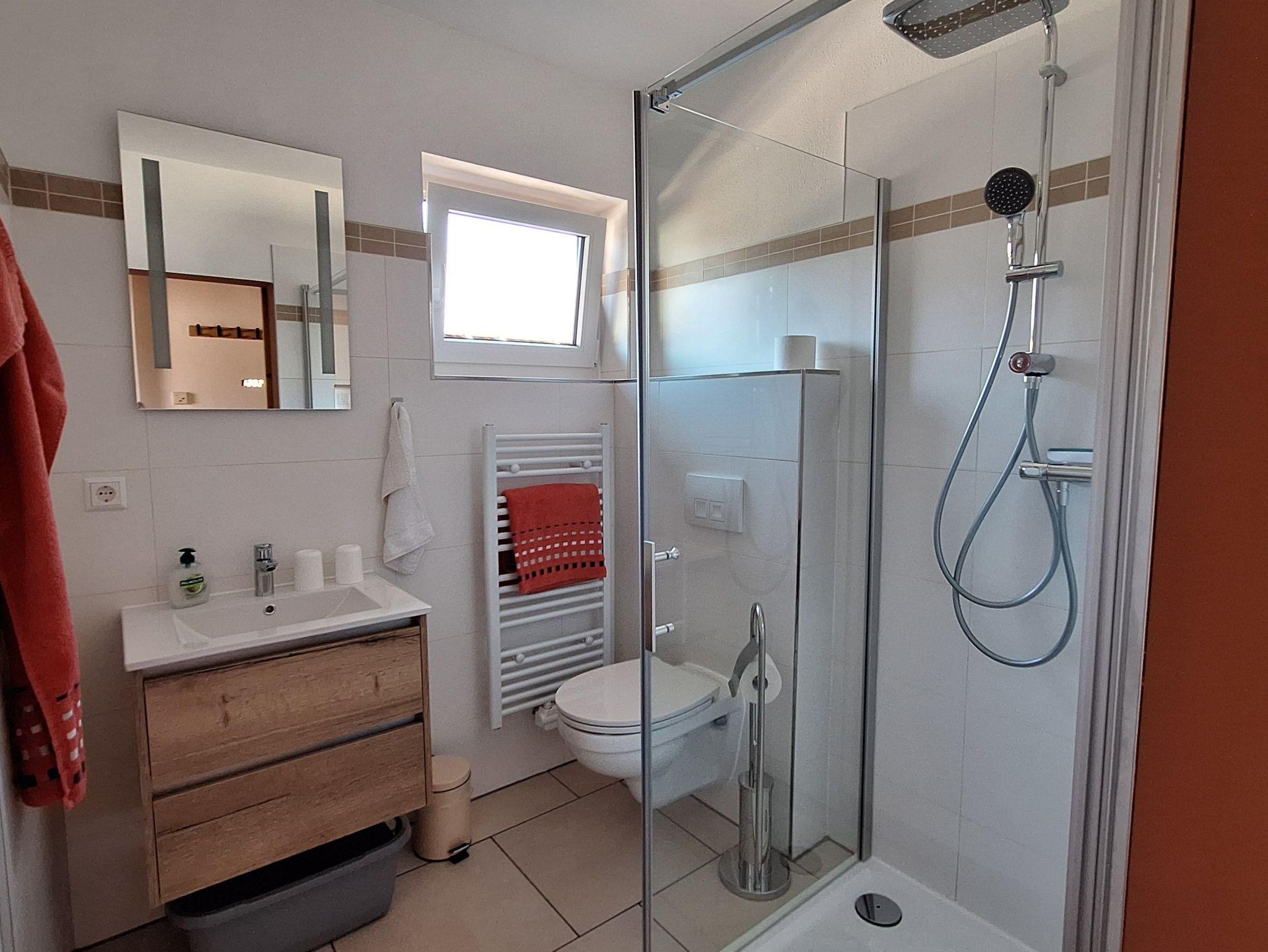 Das Tageslichtbad besteht aus Dusche und WC.