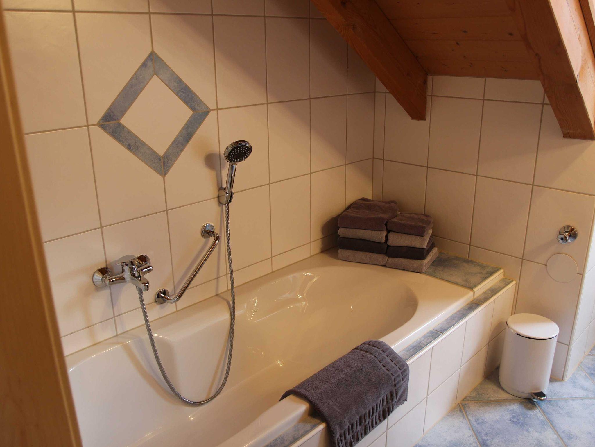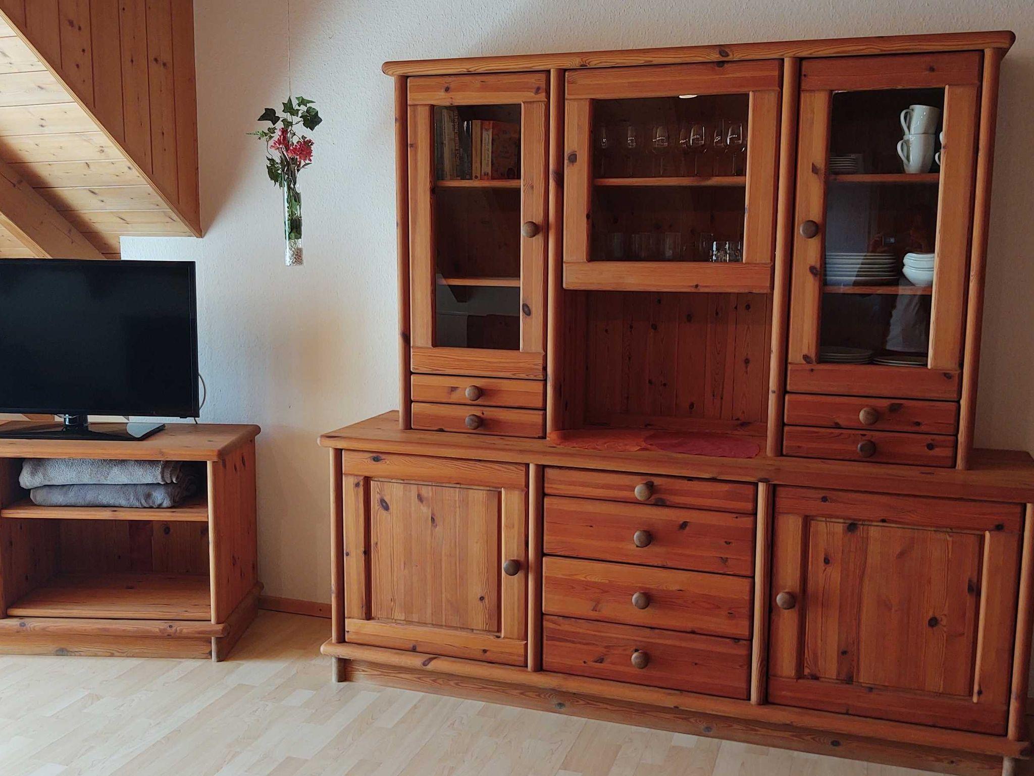 Ausstattung: Garderobe, Schlafzimmer mit Doppelbett, Wohnzimmer mit 40 Flachbildfernseher, voll ausgestattete Küchenzeile mit Kühl/Gefrierschrank, Herd/Backofen, Mikrowelle, Kaffeemaschine, Wasserkocher, Toaster, Eierkocher, Essecke, Bad mit Dusche, Badewanne und Föhn. Zusätzliches Kinderbett im Schlafzimmer möglich. Ihr Auto können sie wettergeschützt unter dem Carport parken. Für ihre Fahrräder steht ein abschließbares Fahrradhäuschen zur Verfügung.