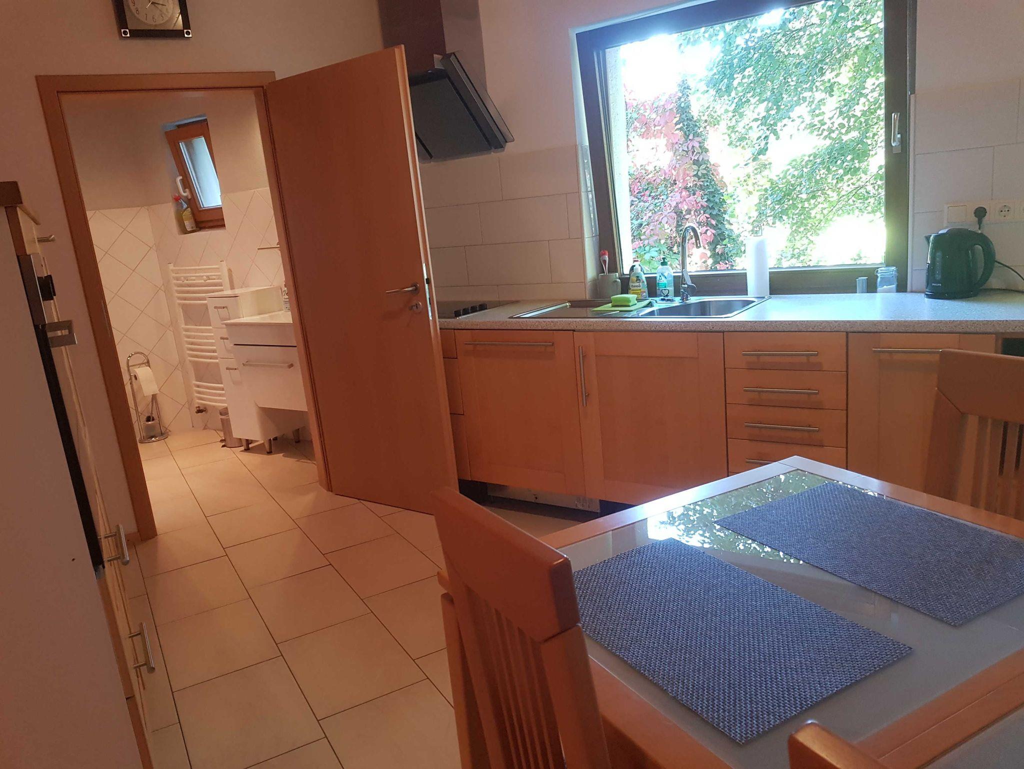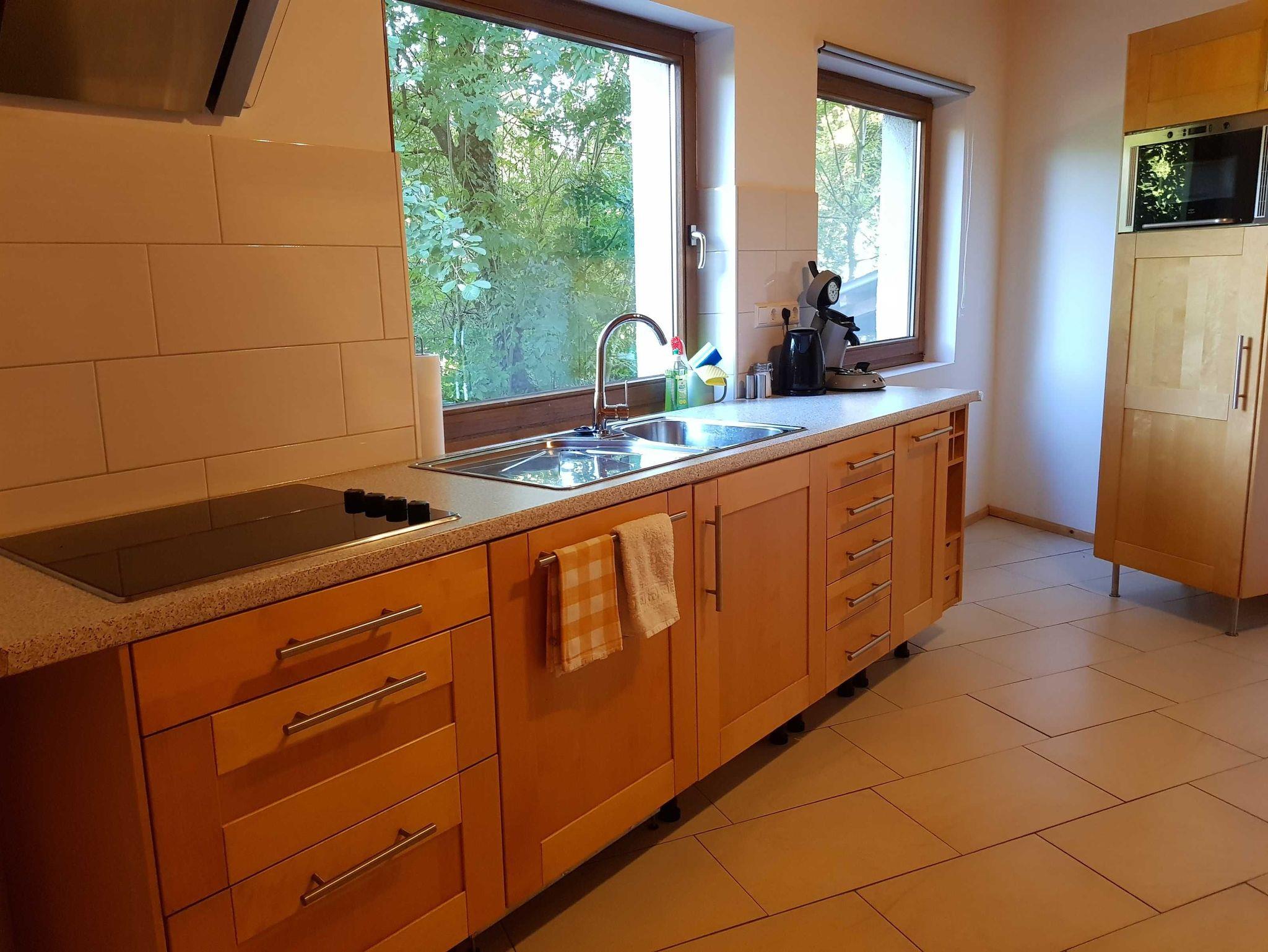 Große, vollausgestattete Küche mit Spülmaschine, Backofen, Mikrowelle, Ceranfeld mit Dunstabzugshaube, Kühlschrank mit Gefrierfach, Kaffeemaschine, Toaster, Wasserkocher, ...