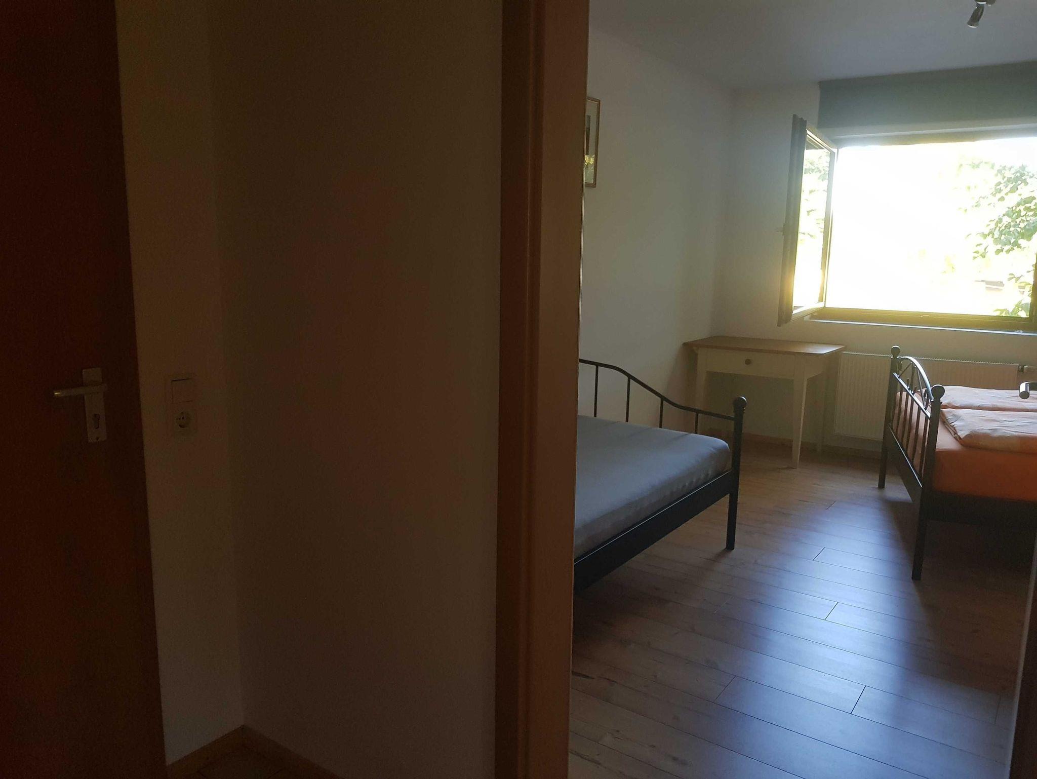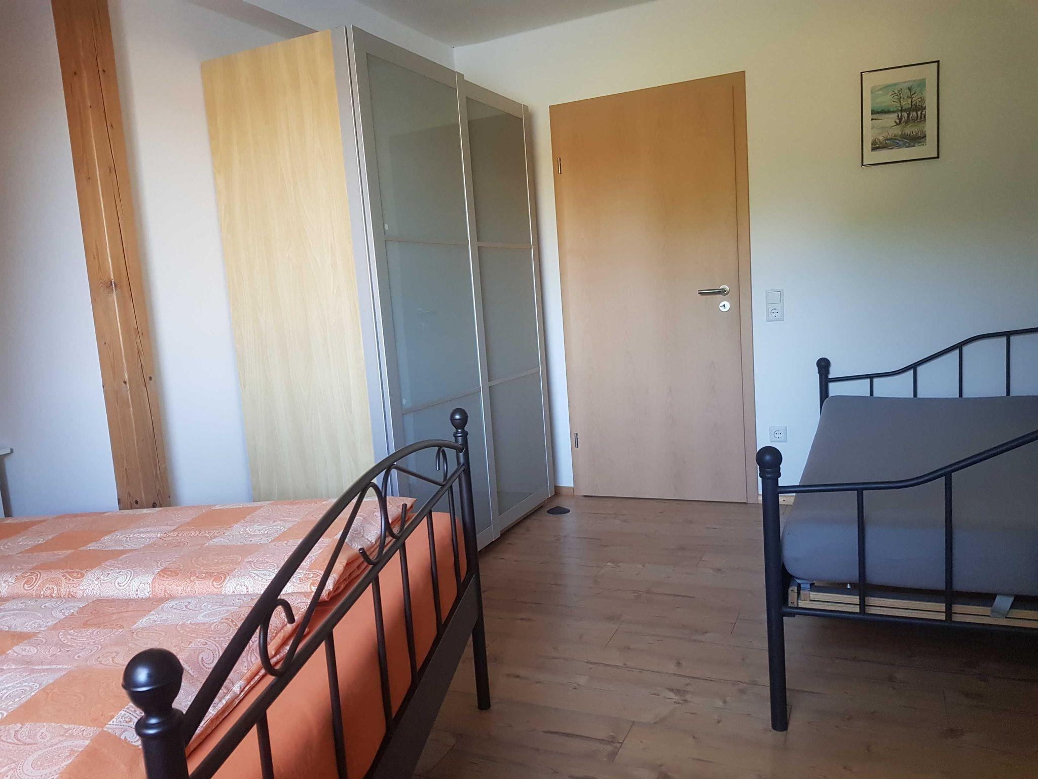 Separates Schlafzimmer mit zwei Betten. Eine weitere Schlafmöglichkeit befindet sich im Wohnzimmer.