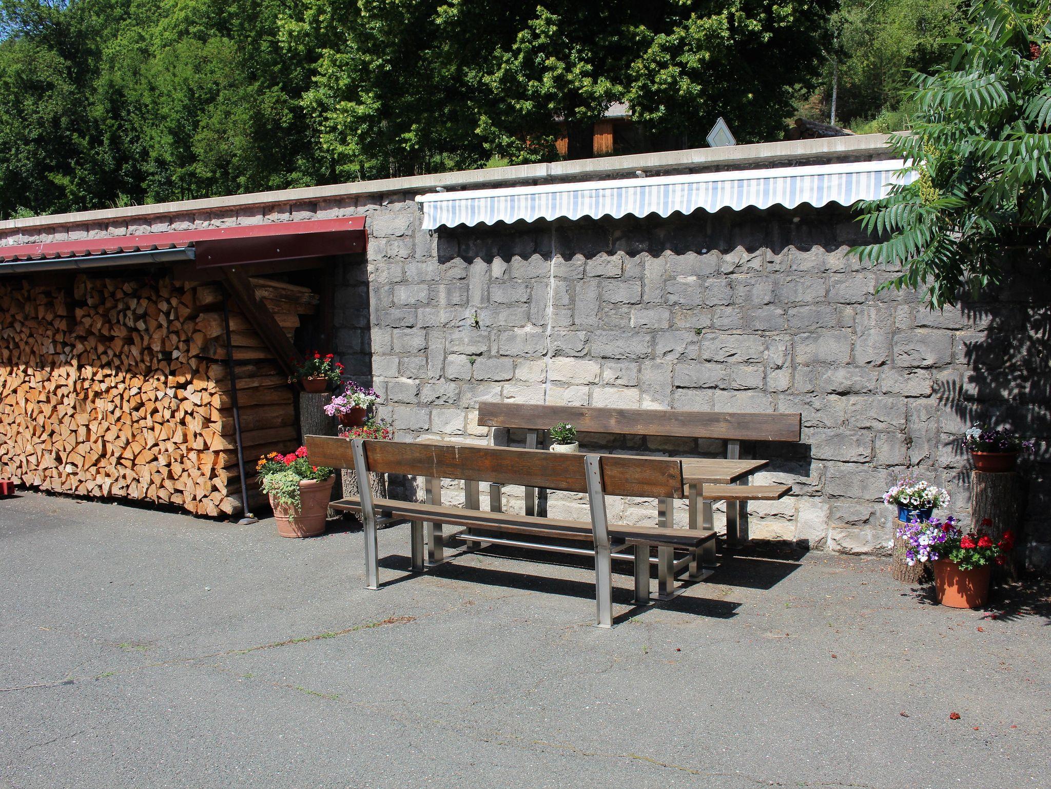 In der Aussenanlage bieten wir Ihnen eine Liegewiese, eine Sitzgruppe mit Schaukel und viel Natur, alles direkt am Bach.