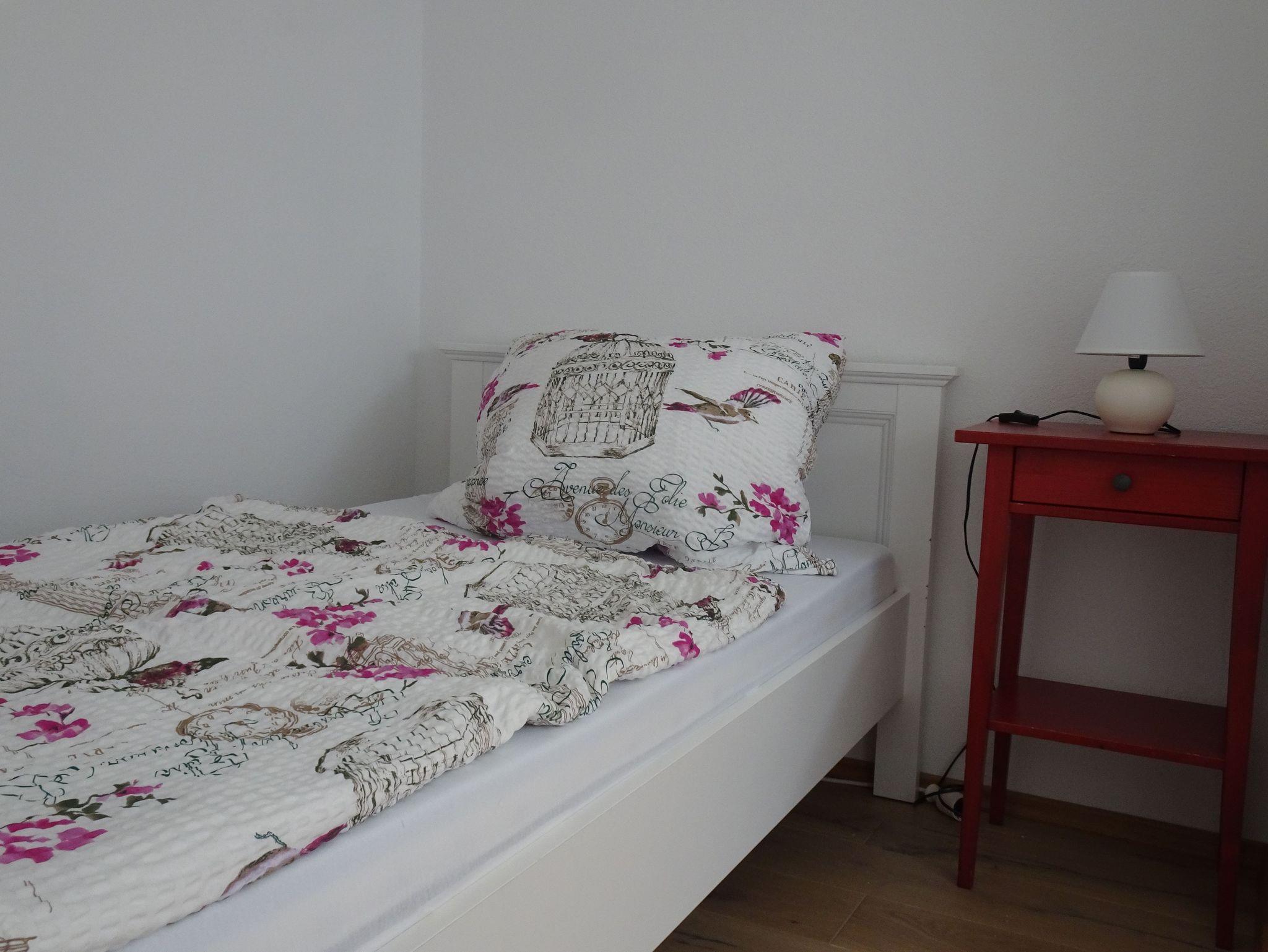 Im Schlafzimmer 2 gibt es ein bequemes Ausziehbett (ausgezogen 170cm x 200cm,) sowie ein Einzelbett, einen Schrank und einen Schreibtisch - So können auch 2 Paare oder 5 Freunde die Wohnung gut nutzen.