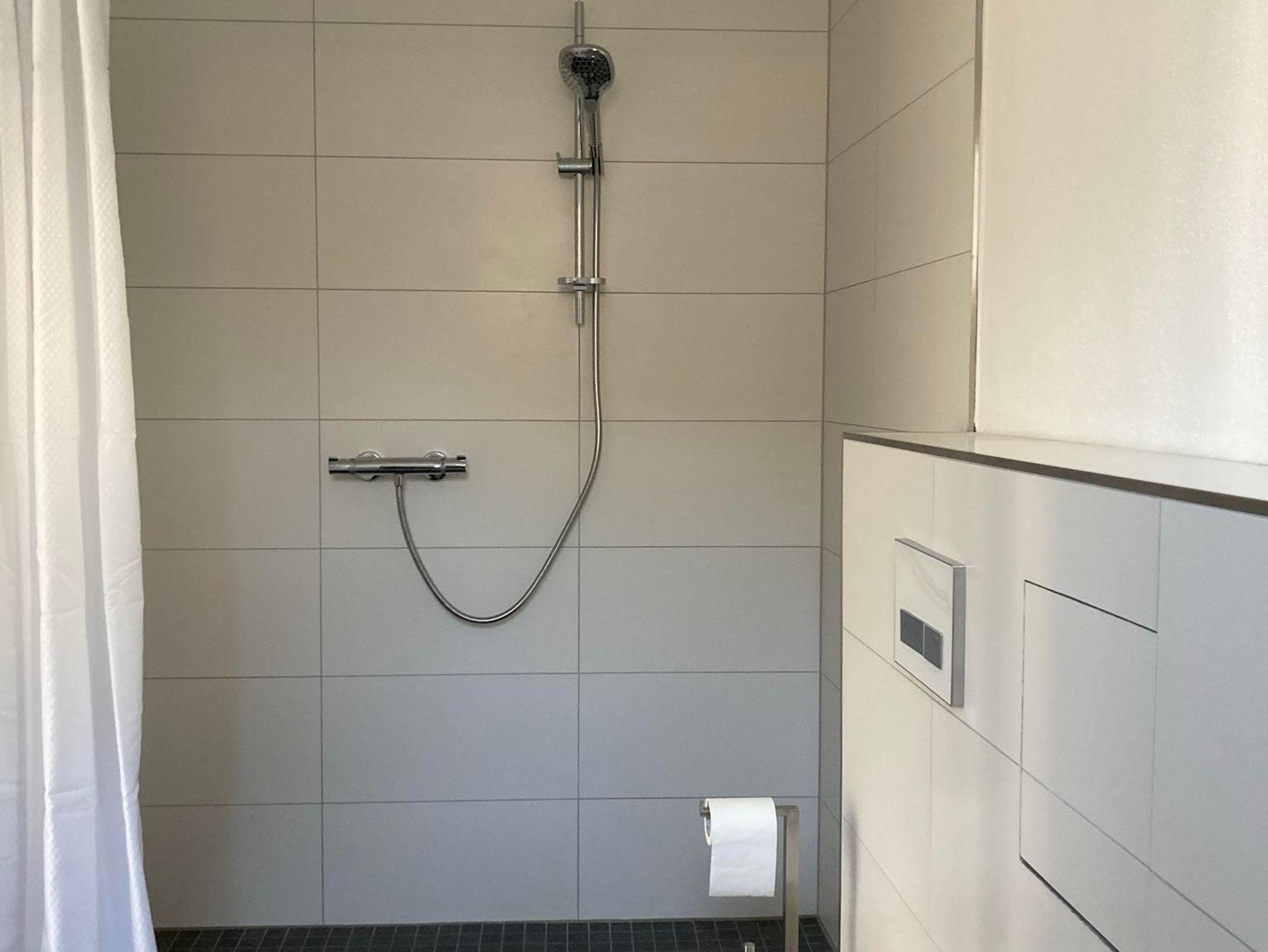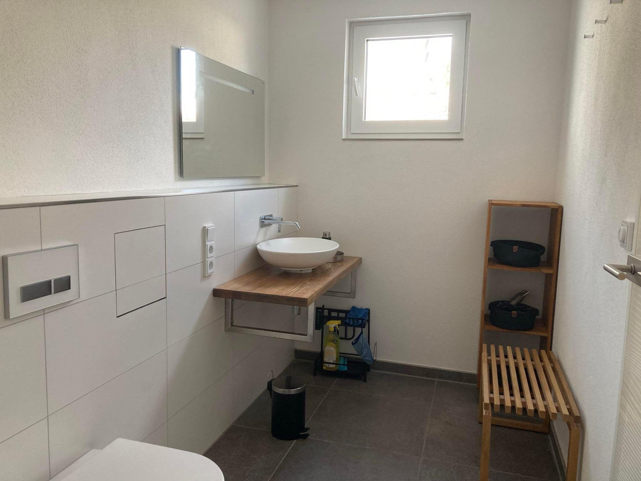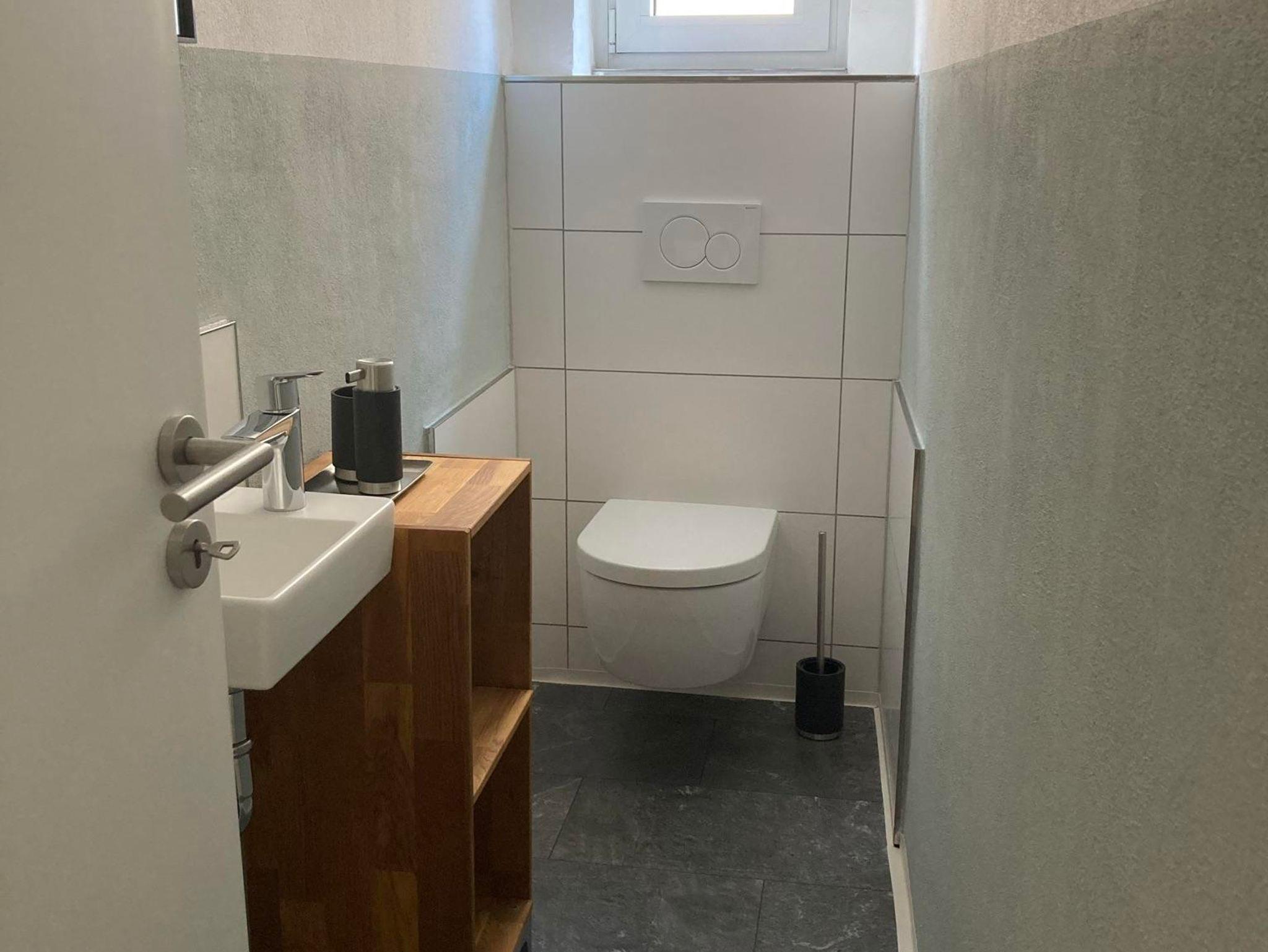 Ein Technikraum mit Waschmaschine und Trockner für Ihre Urlaubswäsche und eine Gästetoilette liegen ebenso auf dieser Wohnebene. In allen Räumen gibt es eine Fußbodenheizung und Lärmschutzfenster, die einen erholsamen Schlaf garantieren.