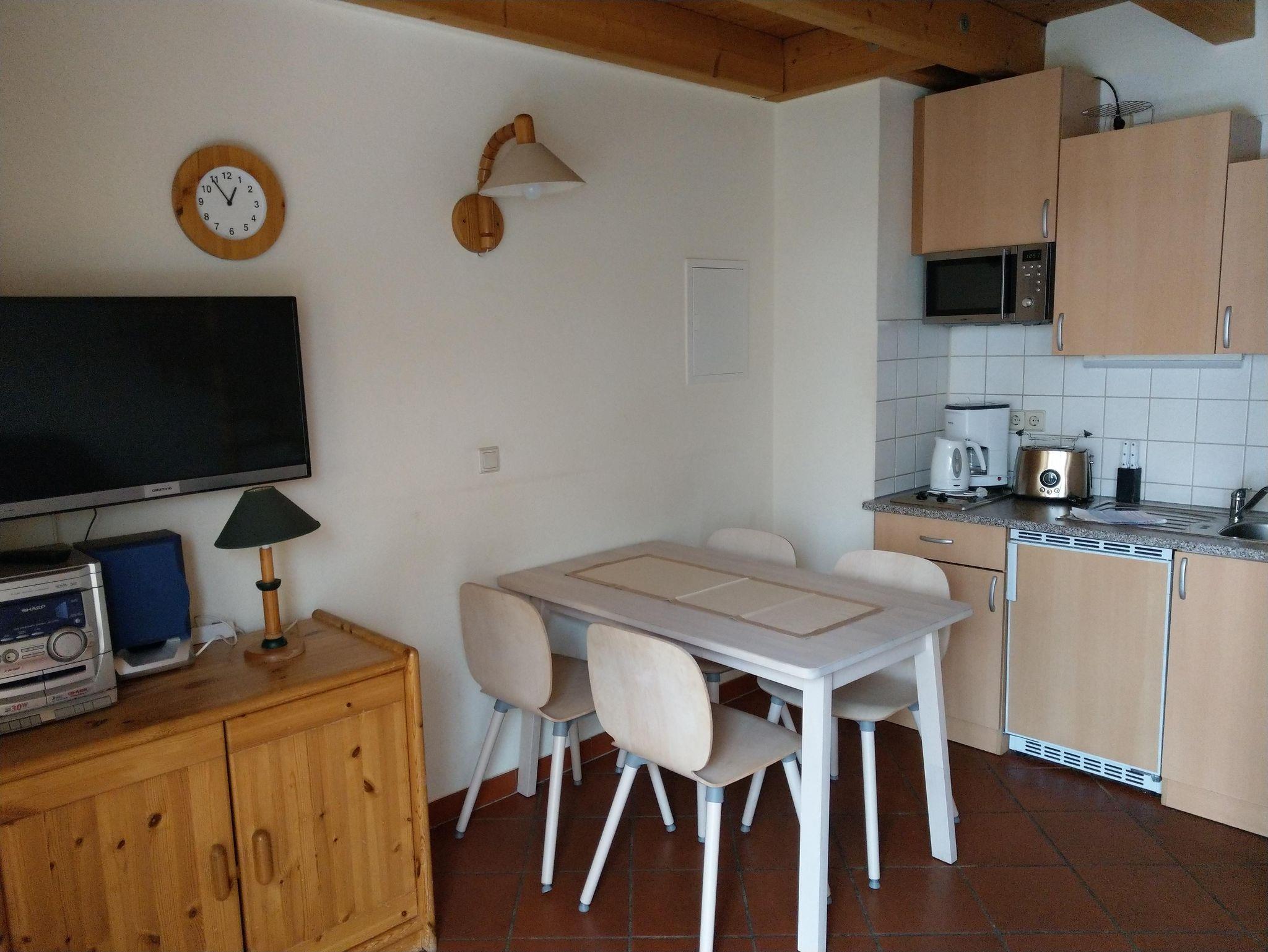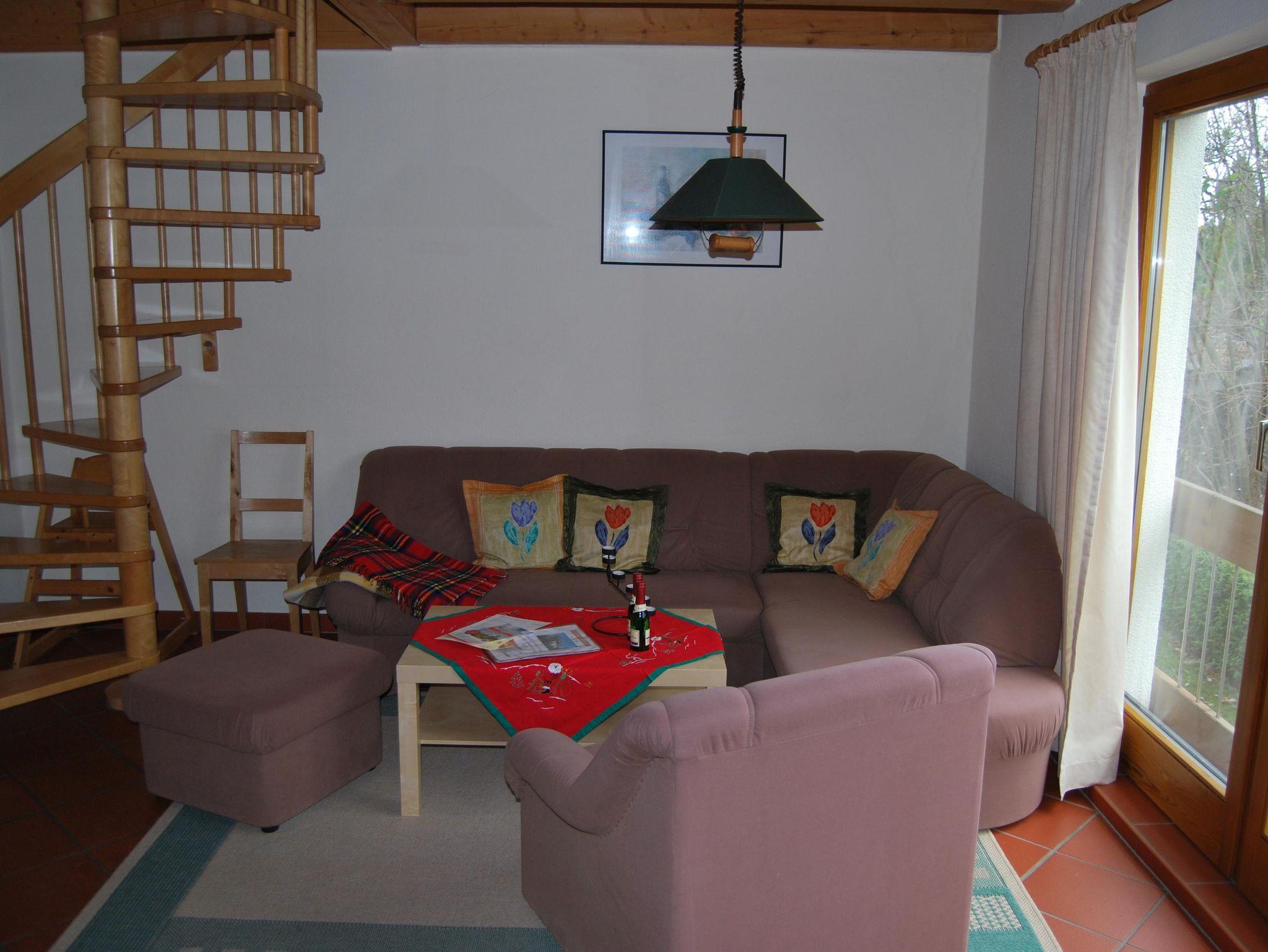 Die Ferienwohnung Süd ist 2-geschossig, ca. 65 m² groß und verfügt über einen gemütlichen Wohnraum mit Sitzecke, Essplatz und kompletter Küchenzeile. Eine Wendeltreppe führt ins Obergeschoss, wo sie die Dusche mit WC und 2 Waschbecken sowie 2 Schlafräume (einmal mit Etagenbett in 200x90 cm!) vorfinden. Ein dritter gemütlicher Schlafraum mit 3 Einzelbetten befindet sich im Dachgeschoss. Wohlfühlfaktoren sind mit Sicherheit unsere Sauna, die Fußbodenheizung und ein spezieller Schuhtrockner.
