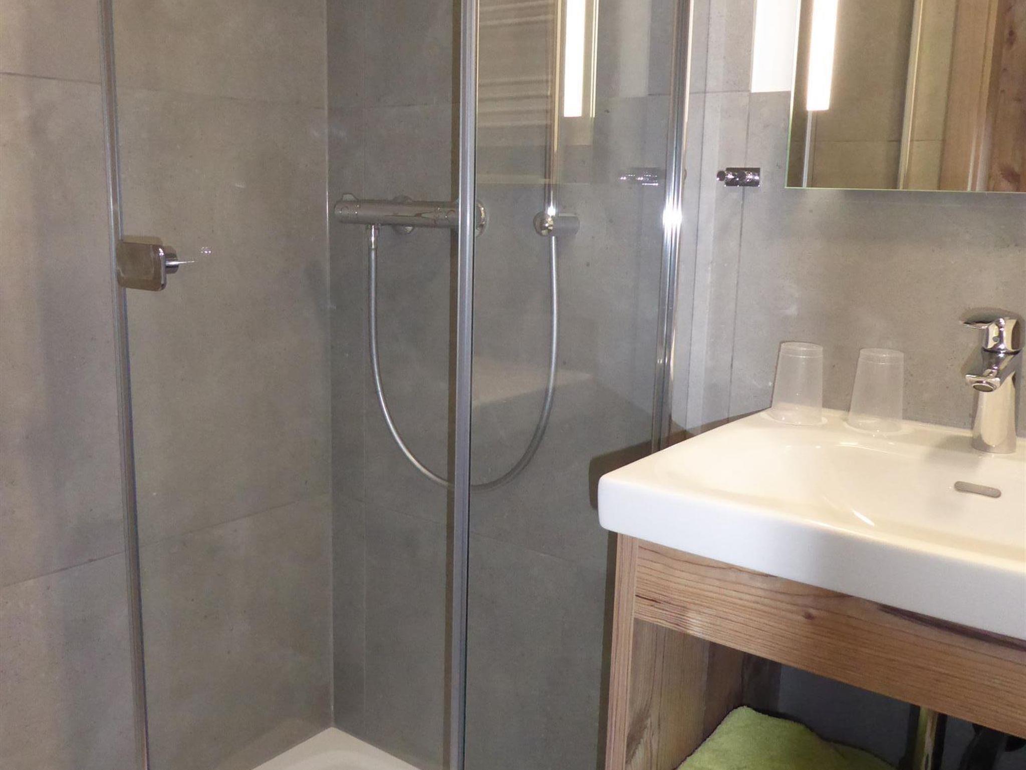 Modernes Bad mit Walk-In-Dusche / WC / Haartrockner