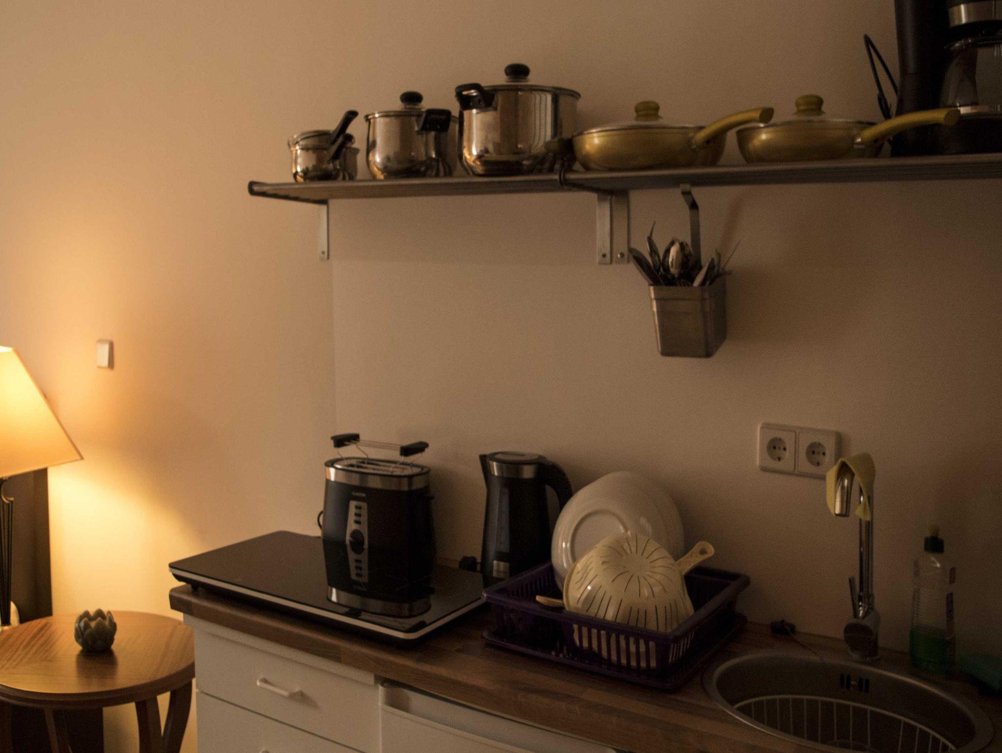 Die Apartments verfügen über kleine Kochnische mit einer Kaffeemaschine, Wasserkocher, einem Toaster, eine Kochplatte, sowie einen Sitzbereich und einem Flachbild-TV. Jedes Zimmer verfügt über kostenfreies WLAN. Das moderne Badezimmer verfügt über Fußbodenheizung und eine ebenerdige Dusche.