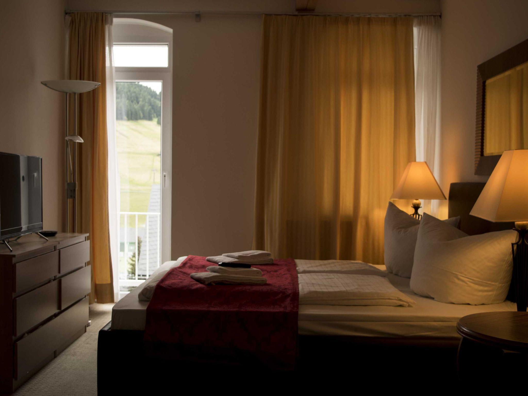 3-Zimmer-Apartments (40-50 qm) für bis zu 7 Personen mit kombiniertem Wohn- / Schlafraum und zusätzlichen zwei separaten Schlafzimmern. Die Apartments verfügen über kleine Kochnische mit einer Kaffeemaschine, Wasserkocher, einem Toaster und einem Kühlschrank, sowie einen Sitzbereich mit einem Flachbild-TV. Jedes Zimmer verfügt über kostenfreies WLAN. Das moderne Badezimmer mit Fußbodenheizung ist mit Dusche (ebenerdig), WC, Waschbecken und einem Haartrockner ausgestattet.