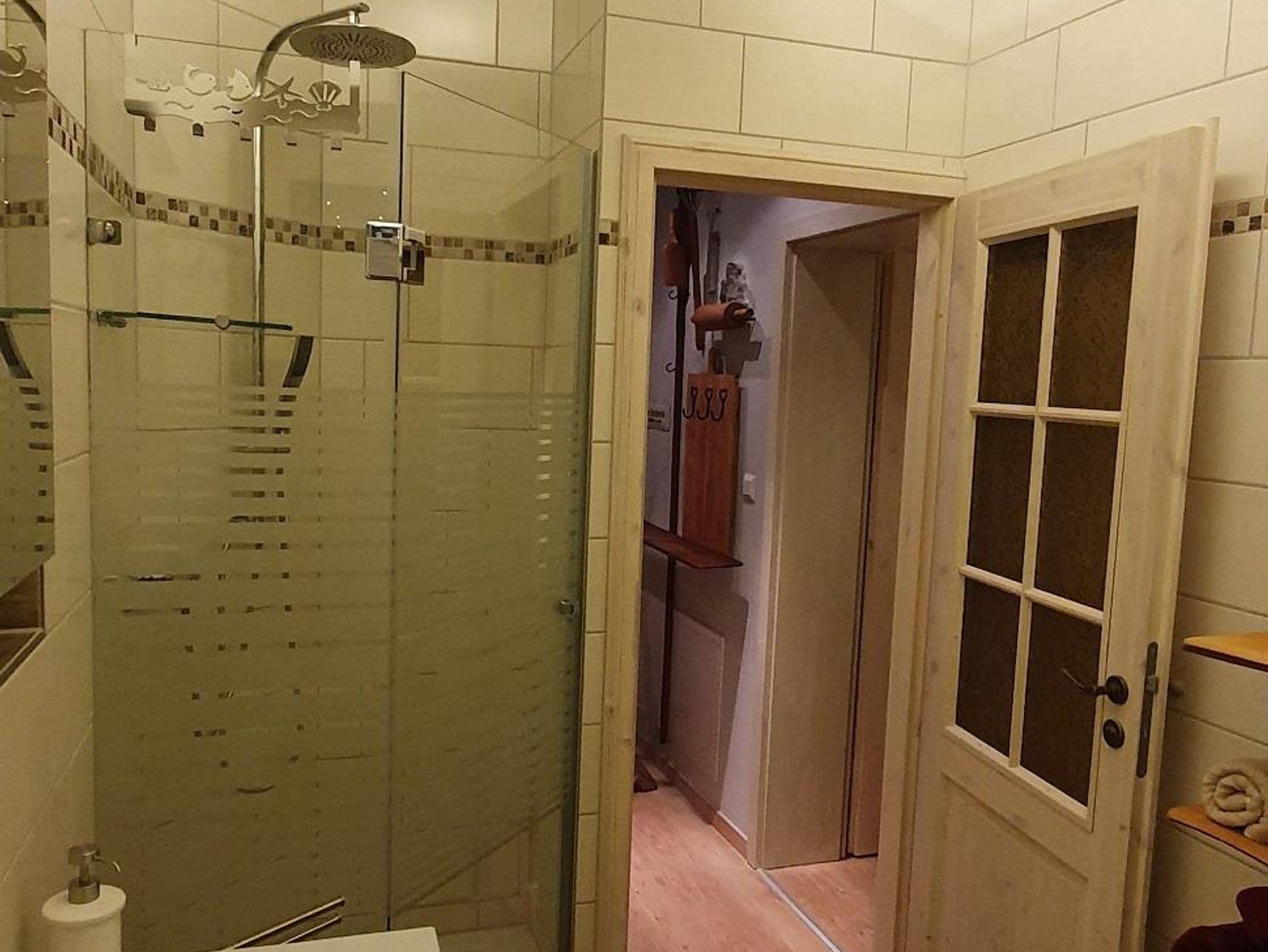 Hier finden Sie eine große geräumige Dusche, WC, Toilettenpapier, Handtücher und einen Haartrockner.