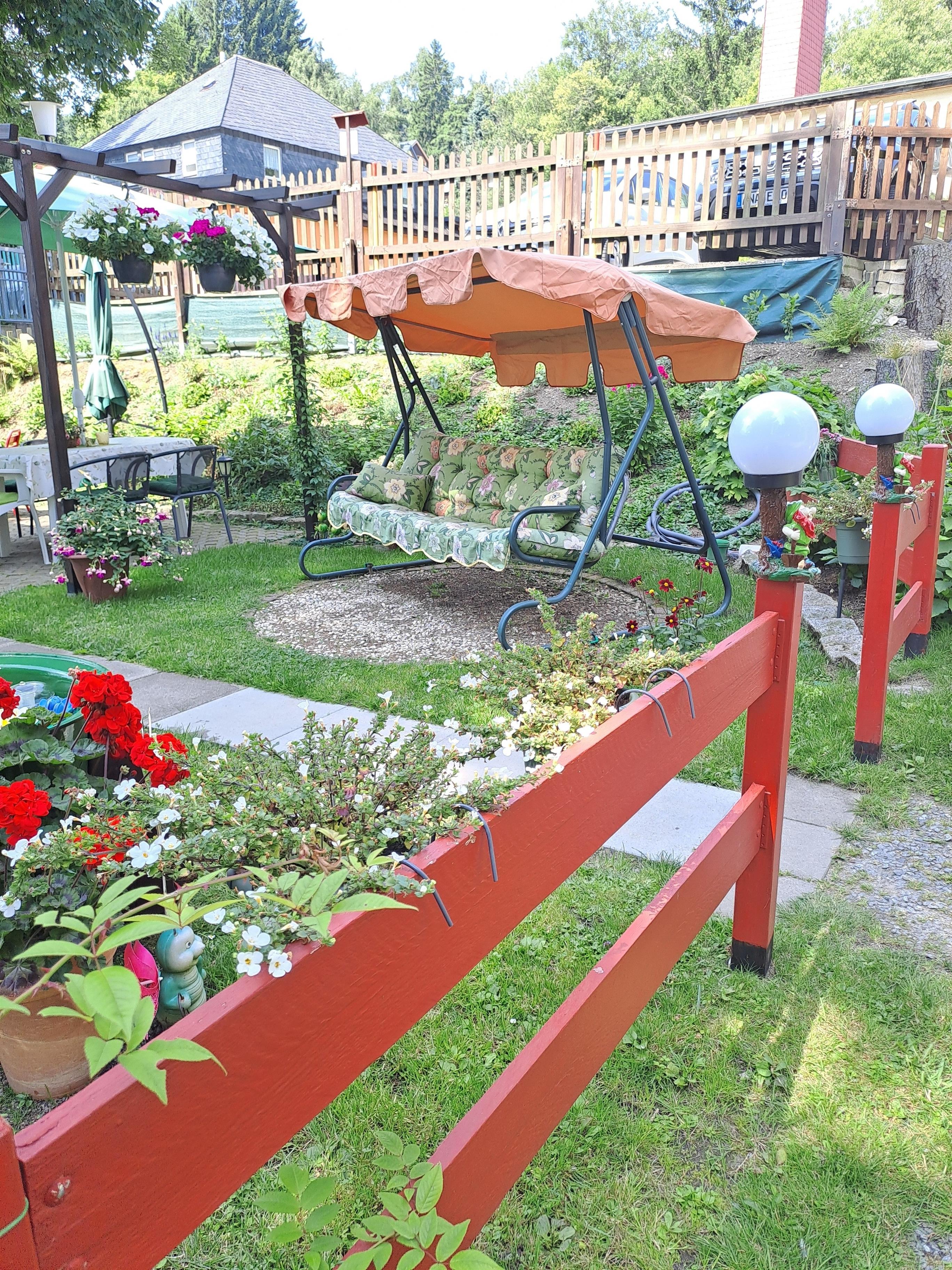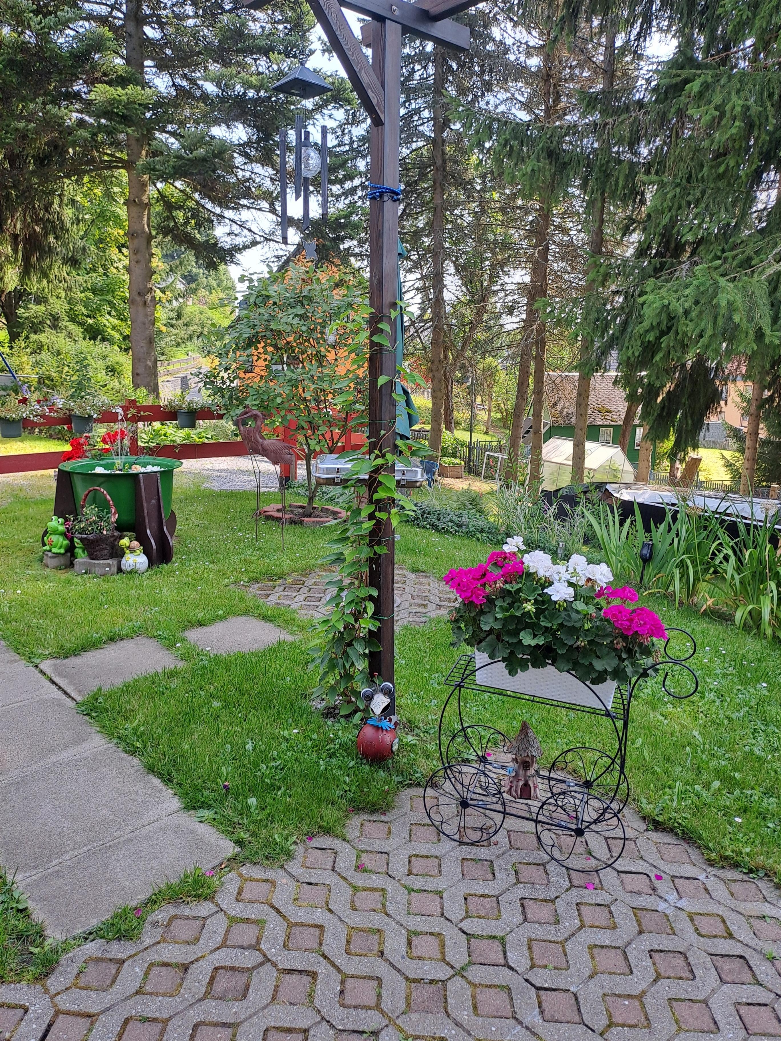 Umgeben von viel Natur am Fuße des Fichtelberges mit Blick zum Keilberg laden wir Sie zur Erholung und Entspannung zu jeder Jahreszeit ganz herzlich ein. Unser schön gestalteter Garten mit einem kl. Springbrunnen und einer Terrasse mit Grillplatz gibt Ihnen Zeit zum Verweilen. Für Kinder gibt es viele Spielemöglichkeiten , wie z. B. Spielhaus und Sandkasten mit Zubehör.