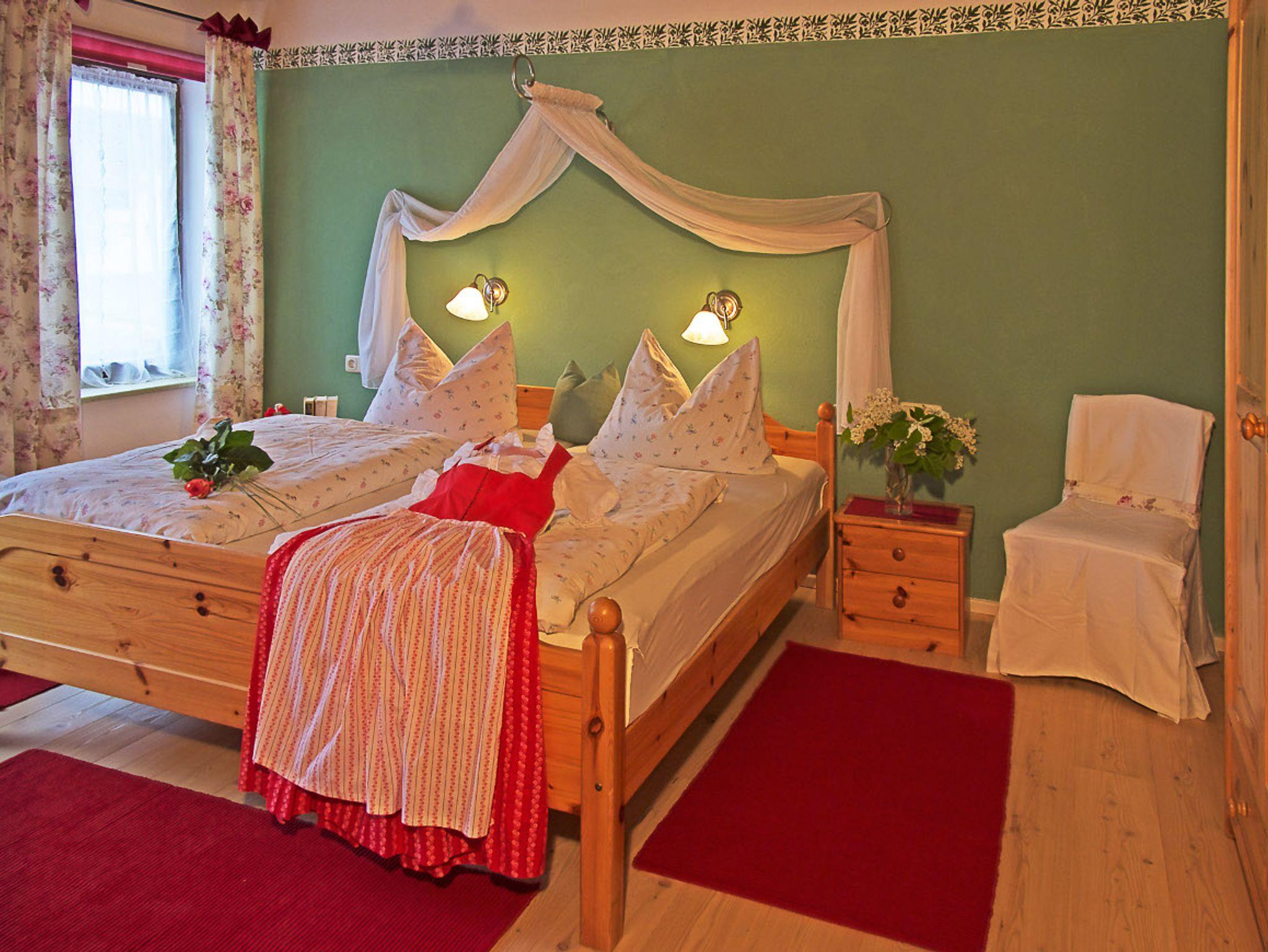 Die liebevoll ausgestattete 4-Sterne-Ferienwohnung Sonnenseite im 1. Obergeschoss verfügt über zwei Schlafzimmer. Die Nichtraucherwohnung ist ganz bequem über einen separaten Eingang zu erreichen. In der urigen Stube zieht der absolut kindersichere Kaminofen alle Blicke auf sich und sorgt in der kalten Jahreszeit für wohlige Wärme. Die Echtholzdecke, die handgeschmiedeten Beschläge, die Wanduhr aus Apfelbaumholz und das 100 Jahre alte Leinen vermitteln echtes Wohlfühlambiente und stehen in spannendem Kontrast zu den modernen Küchengeräten. Der große sonnige Balkon mit Balkonmöbeln und herrlicher Aussicht ins Grüne lädt dazu ein, das Familienfrühstück ins Freie zu verlagern.
