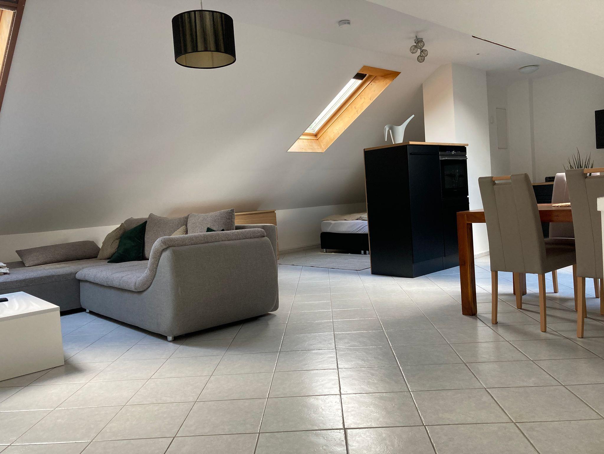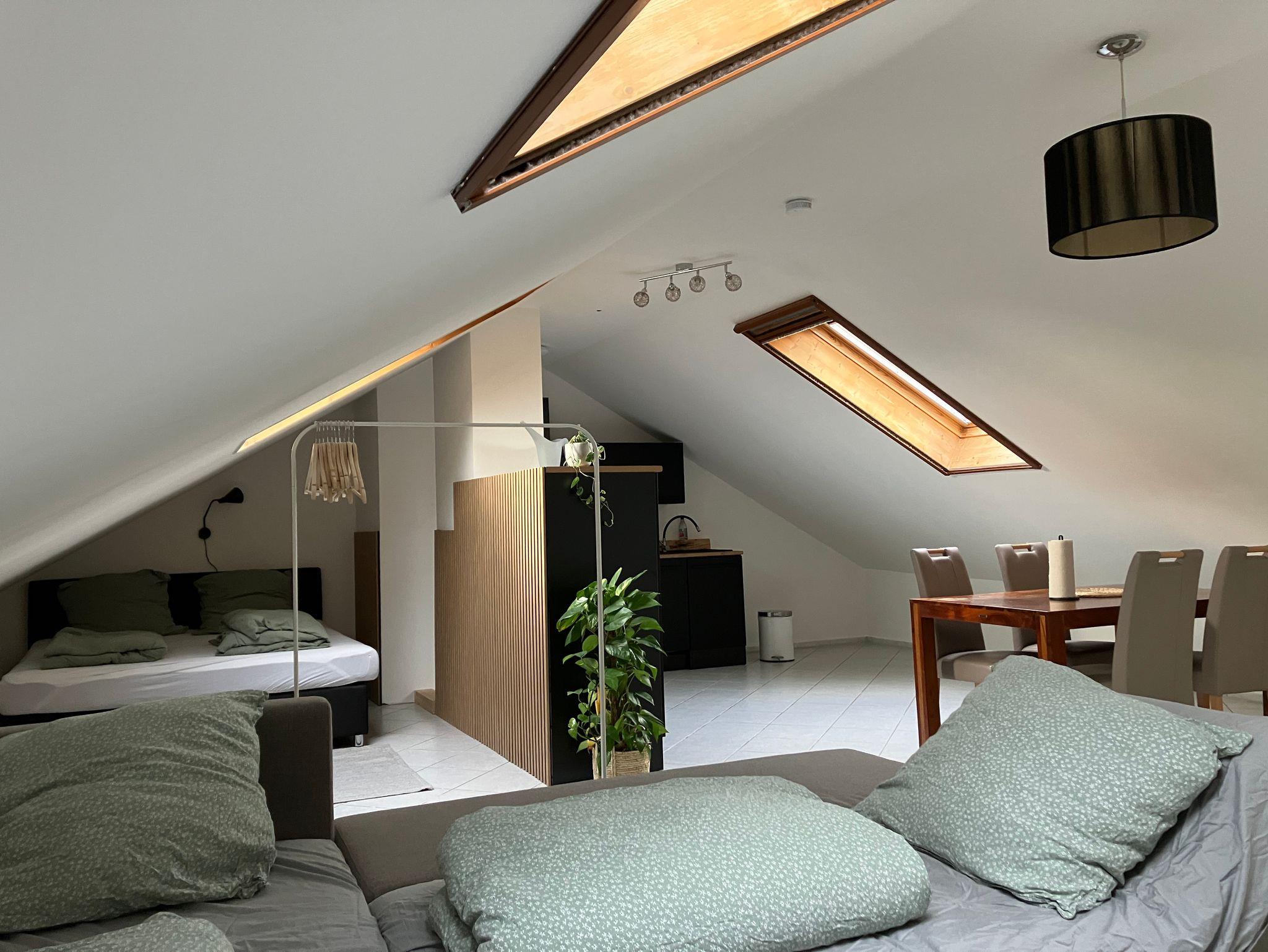Ein großes Doppelbett (180 cm) , eine Couch, welche als Schlafcouch dienen kann, bieten zusammen Platz für bis zu 5 Personen. Falls dies nicht reicht, gibt es die Möglichkeit ein zusätzliches Bett aufzustellen, um nochmal Platz für eine weitere Person zu bieten. Auf Nachfrage ist auch ein Babybett vorhanden.