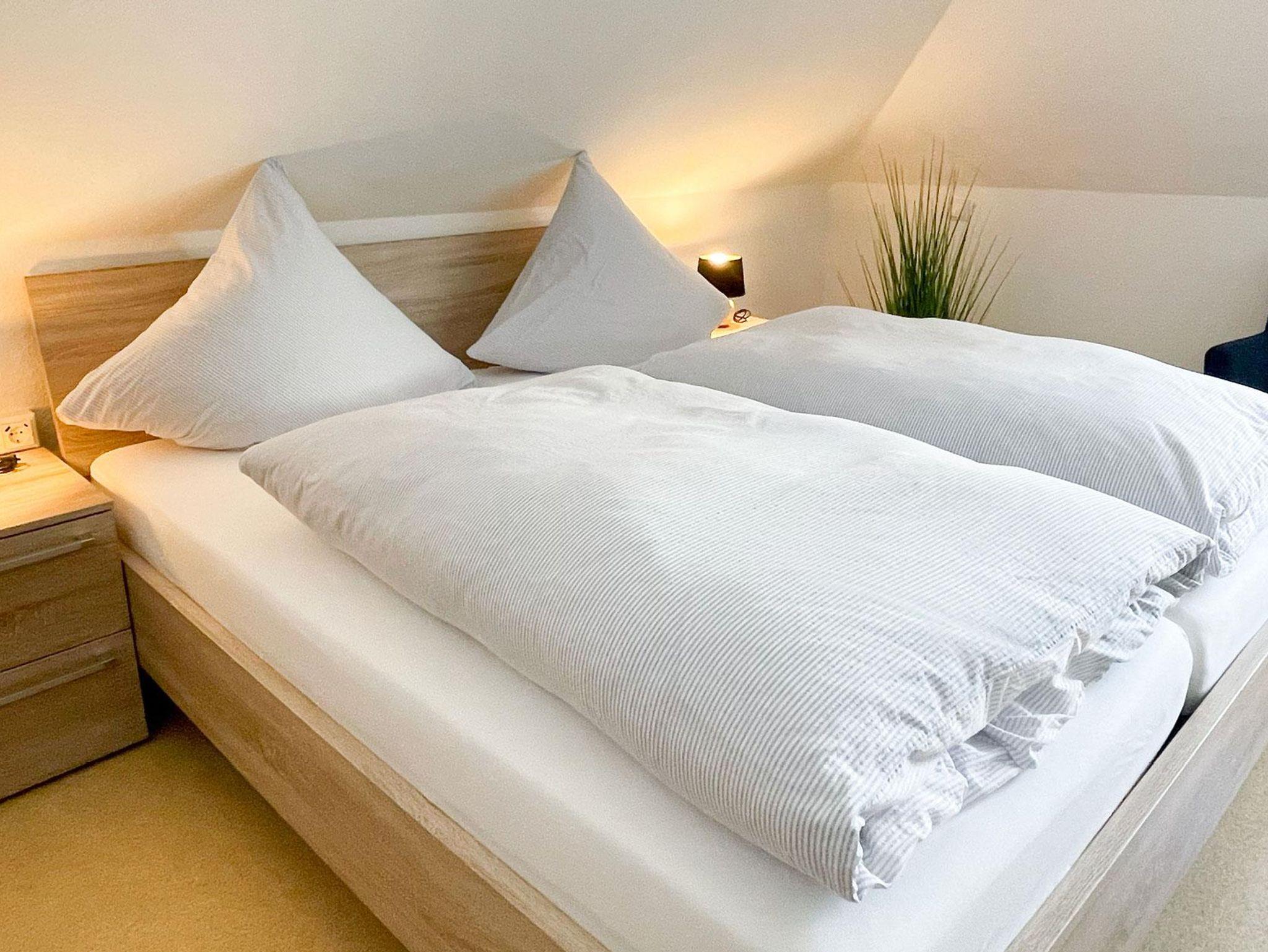 5 Appartements sind bei einer Größe von etwa 37 qm für 2 bis 4 Personen ausgelegt. Jedes Appartement ist mit einem SAT-TV und einer Schlafcouch ausgestattet und verfügt über eine komplett eingerichtete Küche mit Mikrowelle, Herd, Kühlschrank, Wasserkocher, Kaffeemaschine und Toaster. Ein Esstisch mit 4 Stühlen lädt zum gemütlichen Beisammensein ein. Im Schlafbereich finden Sie ein bequemes Doppelbett sowie einen Kleiderschrank. Das moderne Duschbad ist zusätzlich mit einem Föhn ausgestattet. Bitte beachten Sie, dass wir kein Essen oder Frühstück anbieten, da unsere Appartements für Selbstversorger ausgelegt sind.