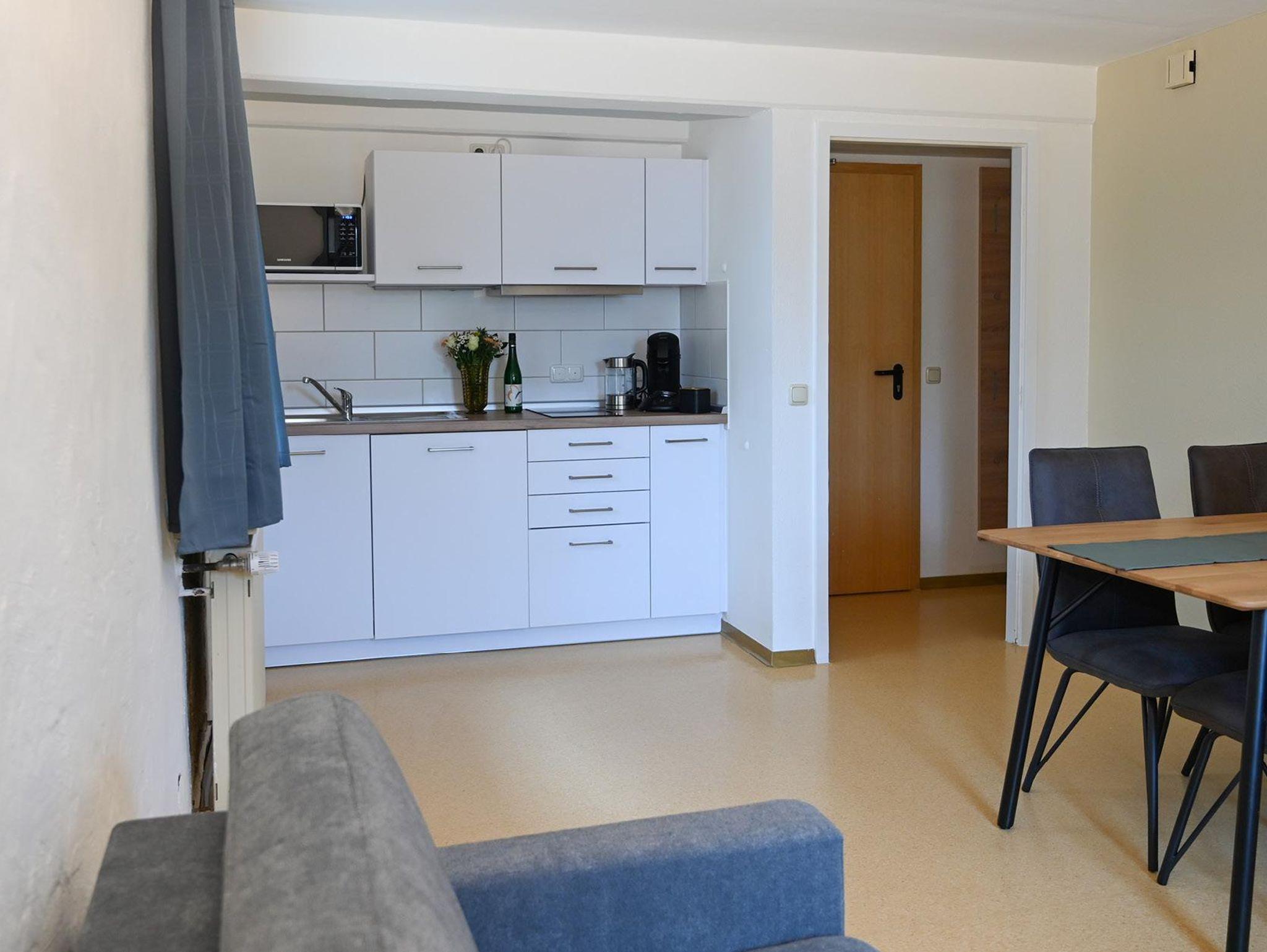 5 Appartements sind bei einer Größe von etwa 37 qm für 2 bis 4 Personen ausgelegt. Jedes Appartement ist mit einem SAT-TV und einer Schlafcouch ausgestattet und verfügt über eine komplett eingerichtete Küche mit Mikrowelle, Herd, Kühlschrank, Wasserkocher, Kaffeemaschine und Toaster. Ein Esstisch mit 4 Stühlen lädt zum gemütlichen Beisammensein ein. Im Schlafbereich finden Sie ein bequemes Doppelbett sowie einen Kleiderschrank. Das moderne Duschbad ist zusätzlich mit einem Föhn ausgestattet. Bitte beachten Sie, dass wir kein Essen oder Frühstück anbieten, da unsere Appartements für Selbstversorger ausgelegt sind.